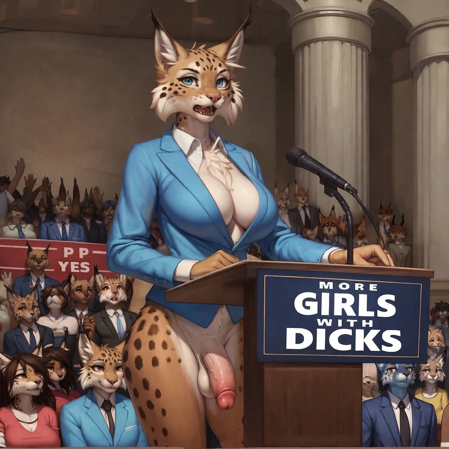 Lynx Gynomorph Addresses Rally Bottomless In Blue Suit | Yiff Party