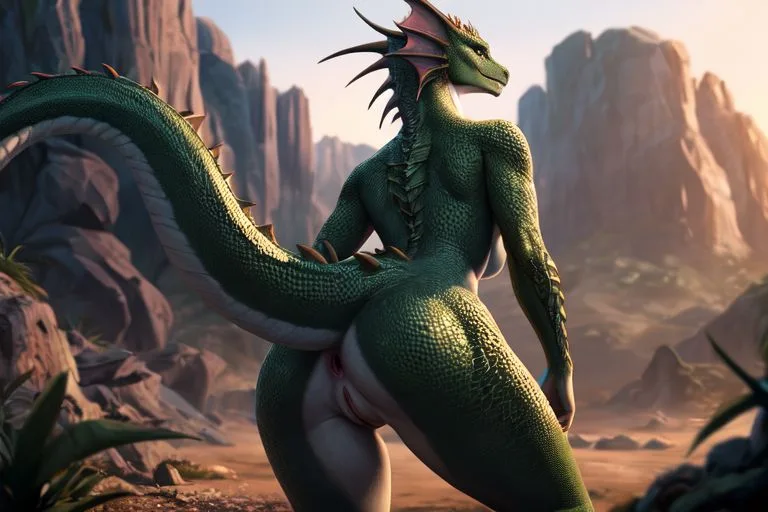 Male Dracthyr Dragon Showing Off Scaled Pussy Anus And Breasts Outdoor | Yiff Party
