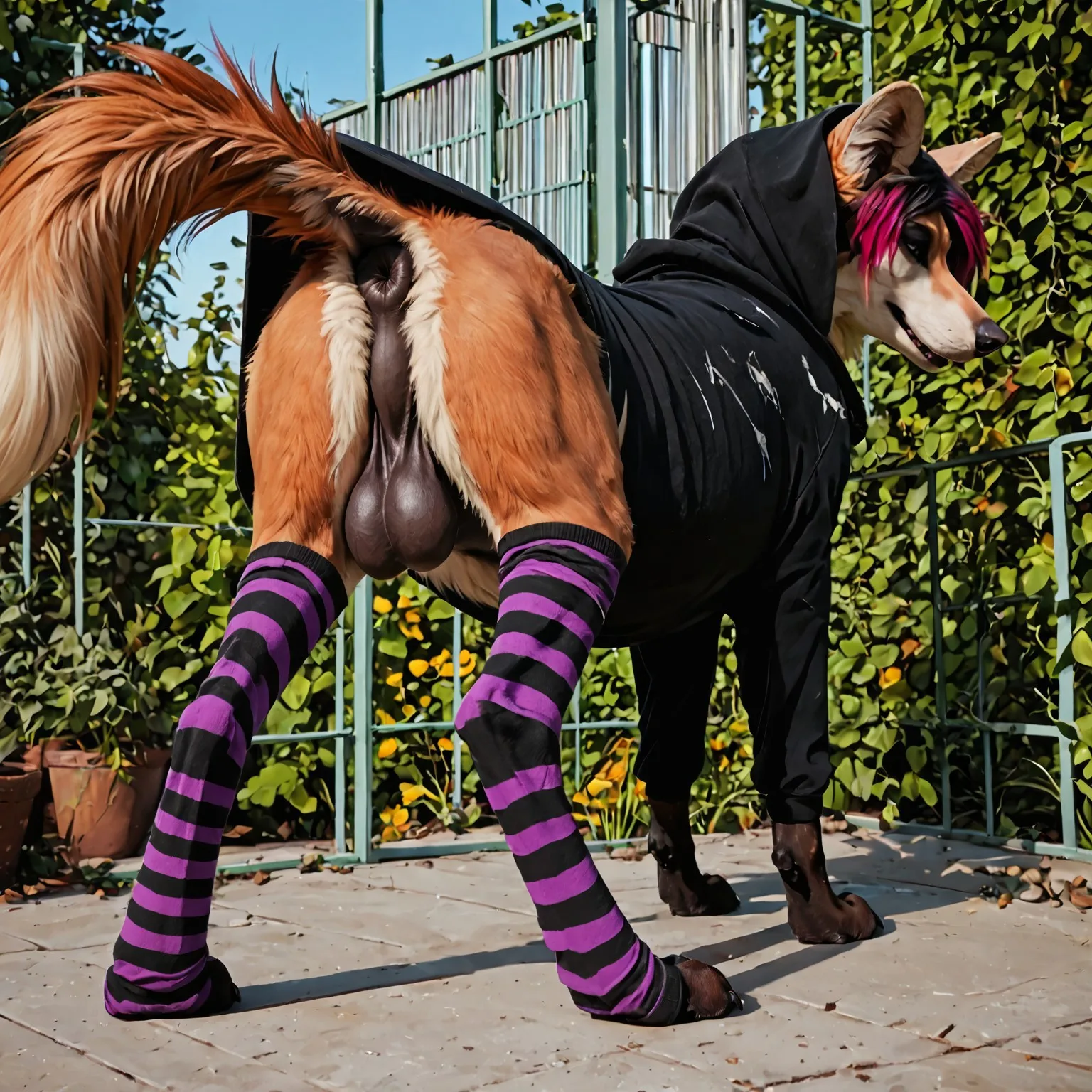 Maned Wolf Exposes Saggy Black Balls And Anus In Striped Hoodie Outsid | Yiff Party