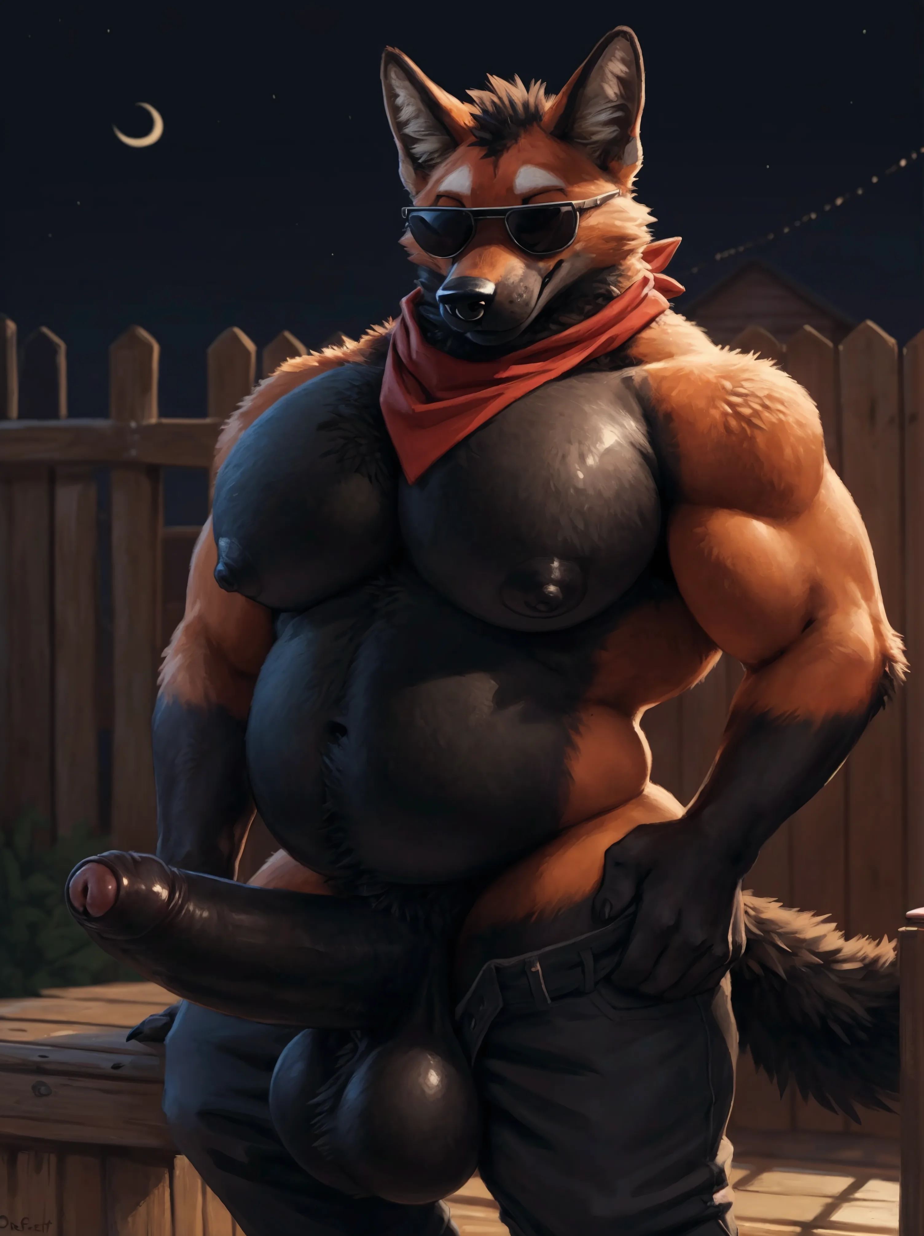 Maned Wolf Presents Big Black Balls And Penis Outdoors At Night | Yiff Party