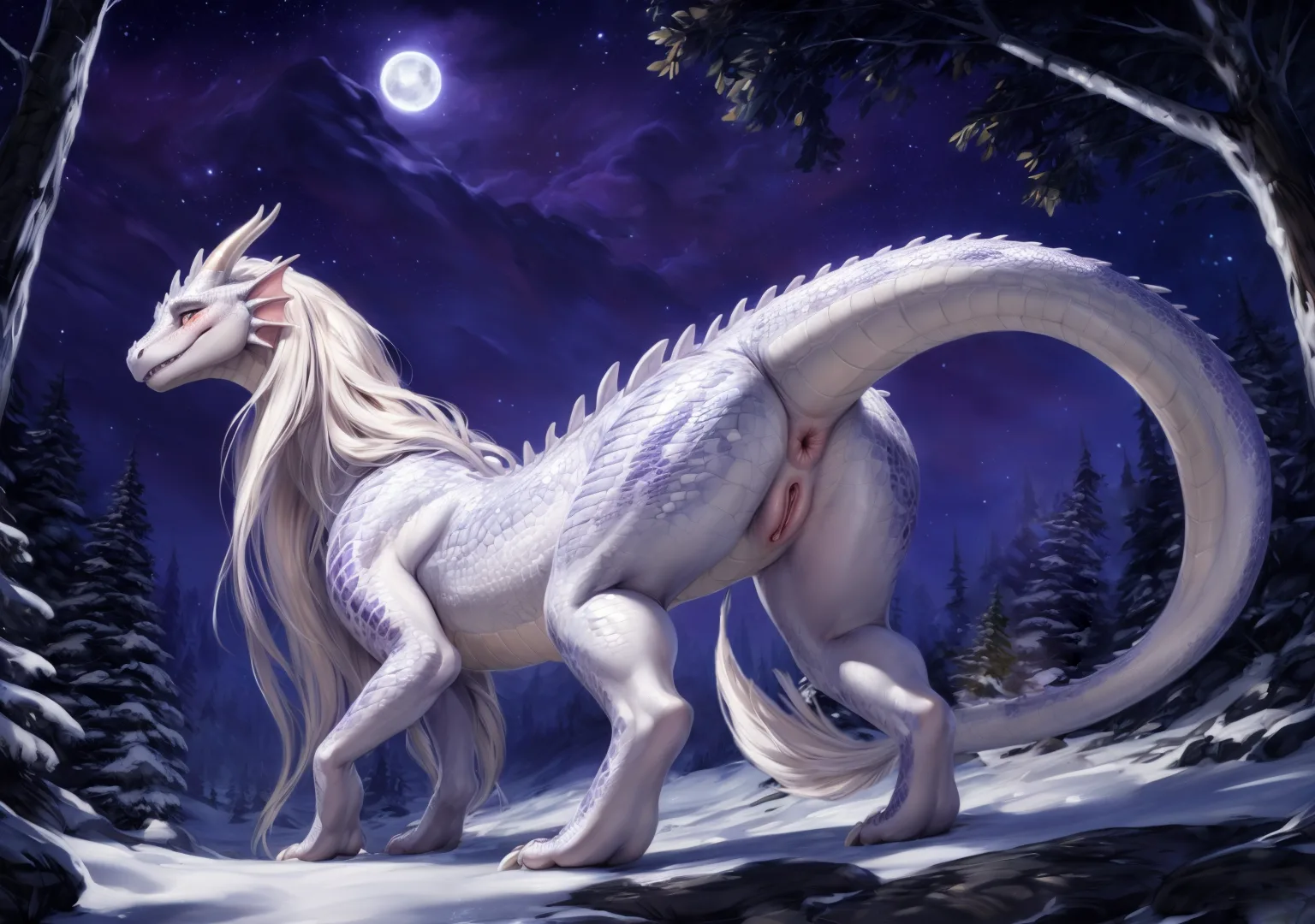Moonlit Mythological White Dragon Scalie Presenting Pussy To Viewer | Yiff Party