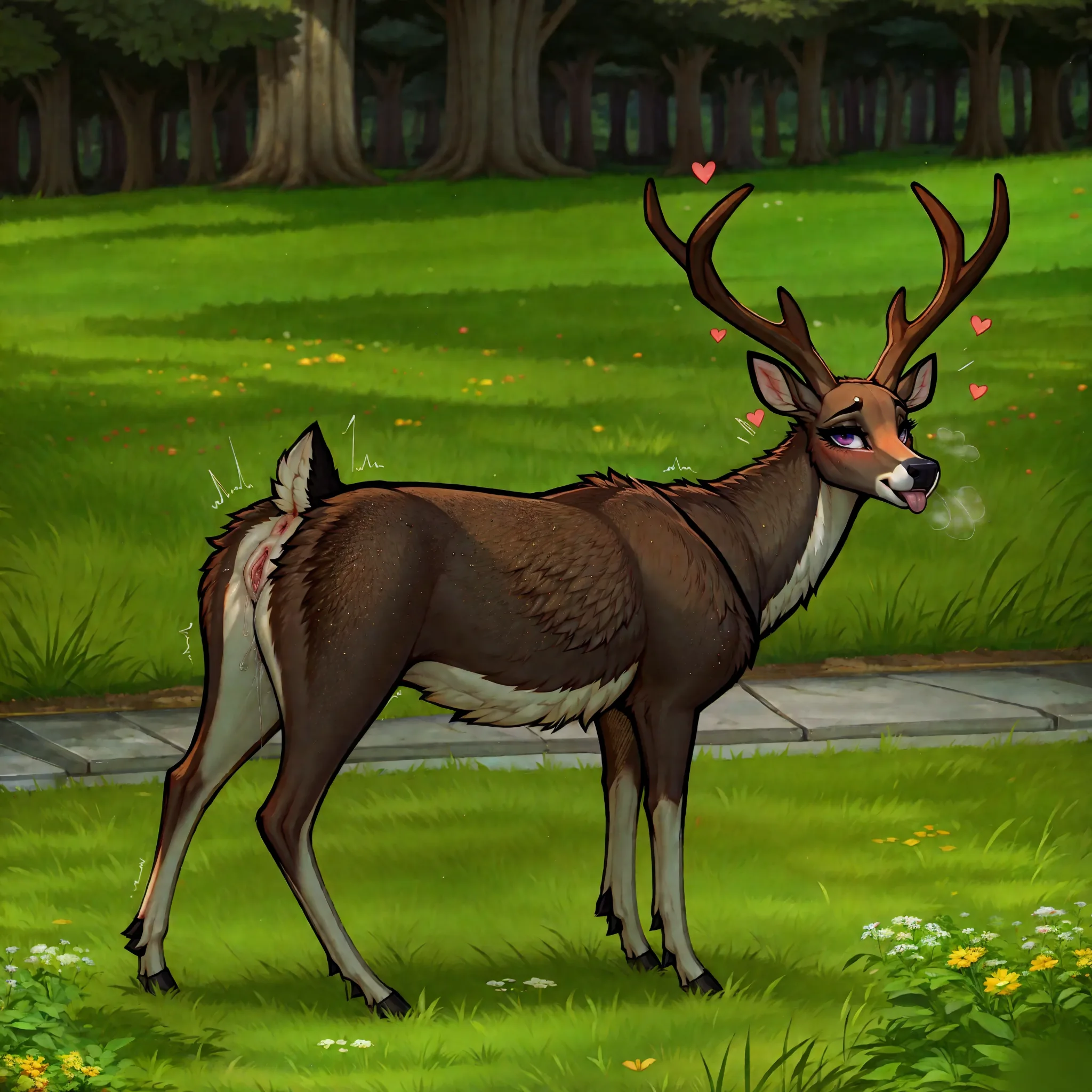 Mule Deer Doe Exposes Wet Pussy And Anus To Viewer Under Tree | Yiff Party