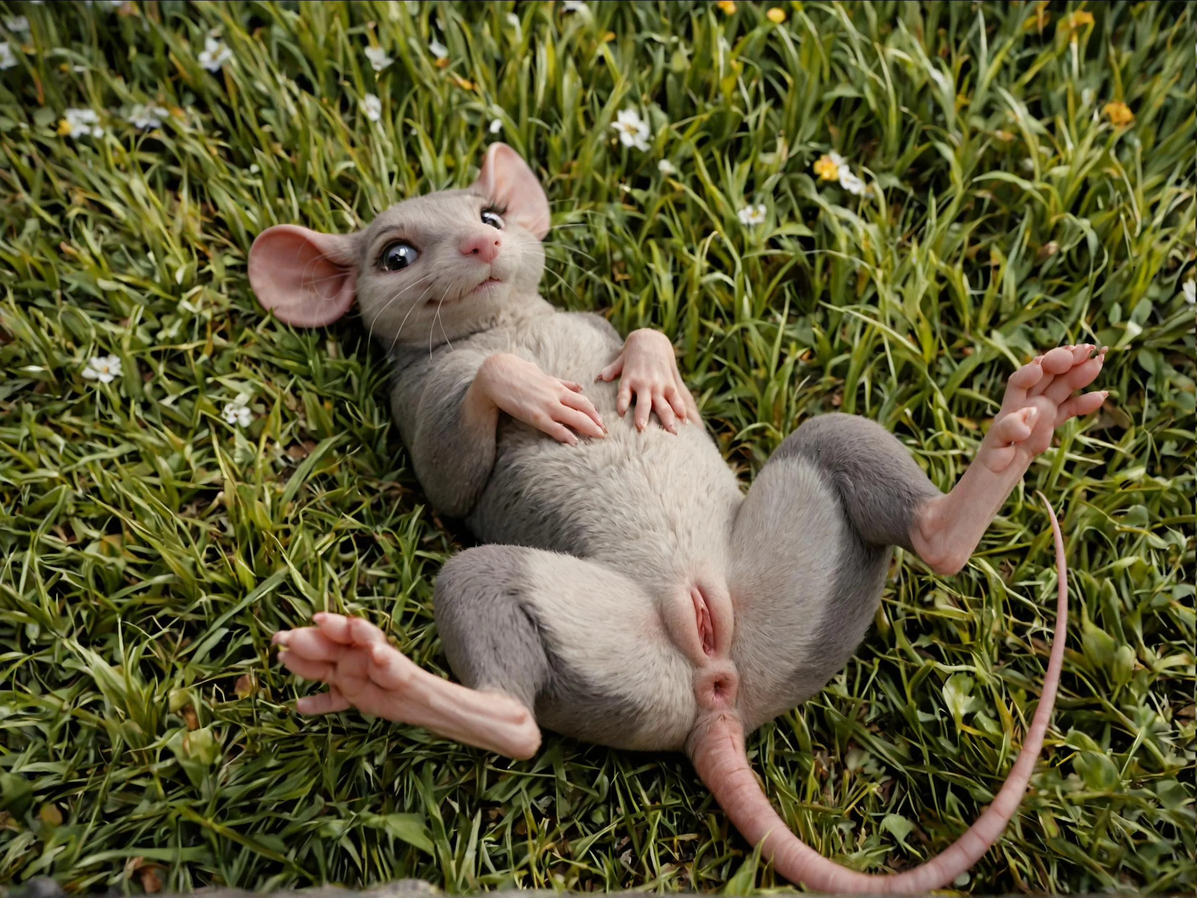 Multicolored Feral Mouse Presenting Her Pink Pussy On Grass | Yiff Party