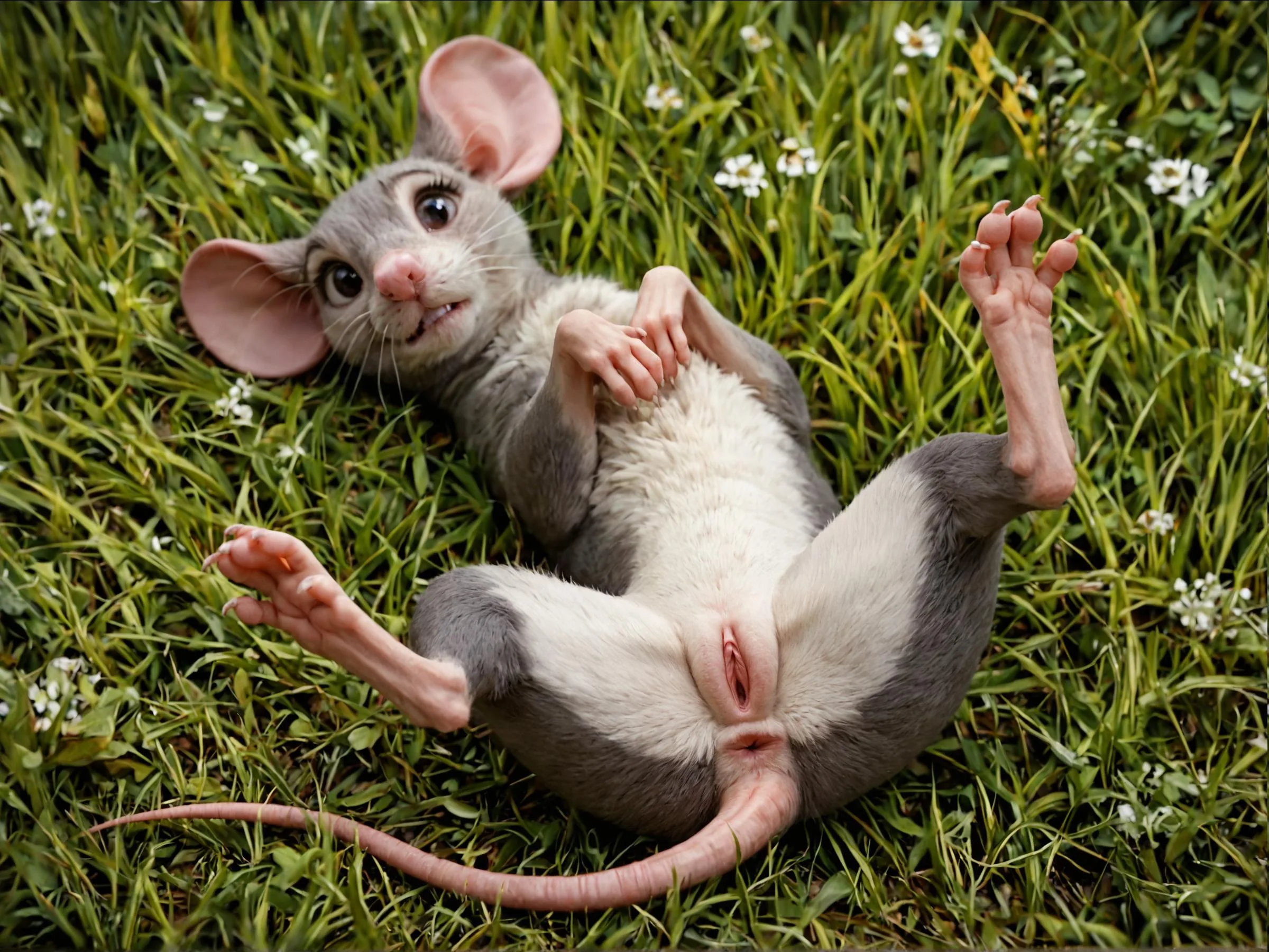 Multicolored Feral Mouse Presenting Her Pink Pussy On Grass | Yiff Party