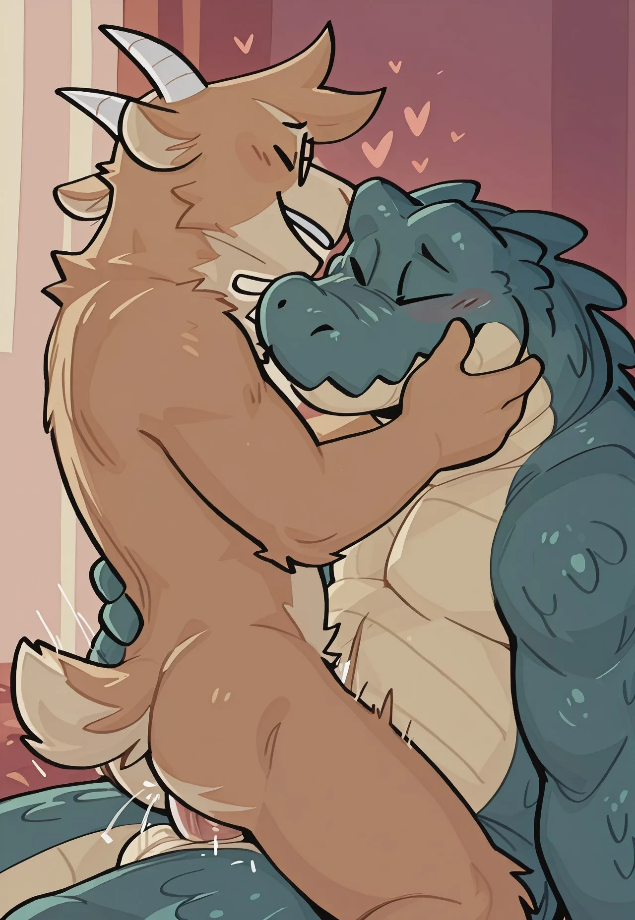 Muscular Anthro Crocodile And Alligatorid Love In Pink Romantic Ambian | Yiff Party