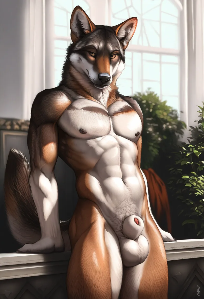 Muscular Anthro Wolf Showing Off Abs And Genitals Seductively | Yiff Party