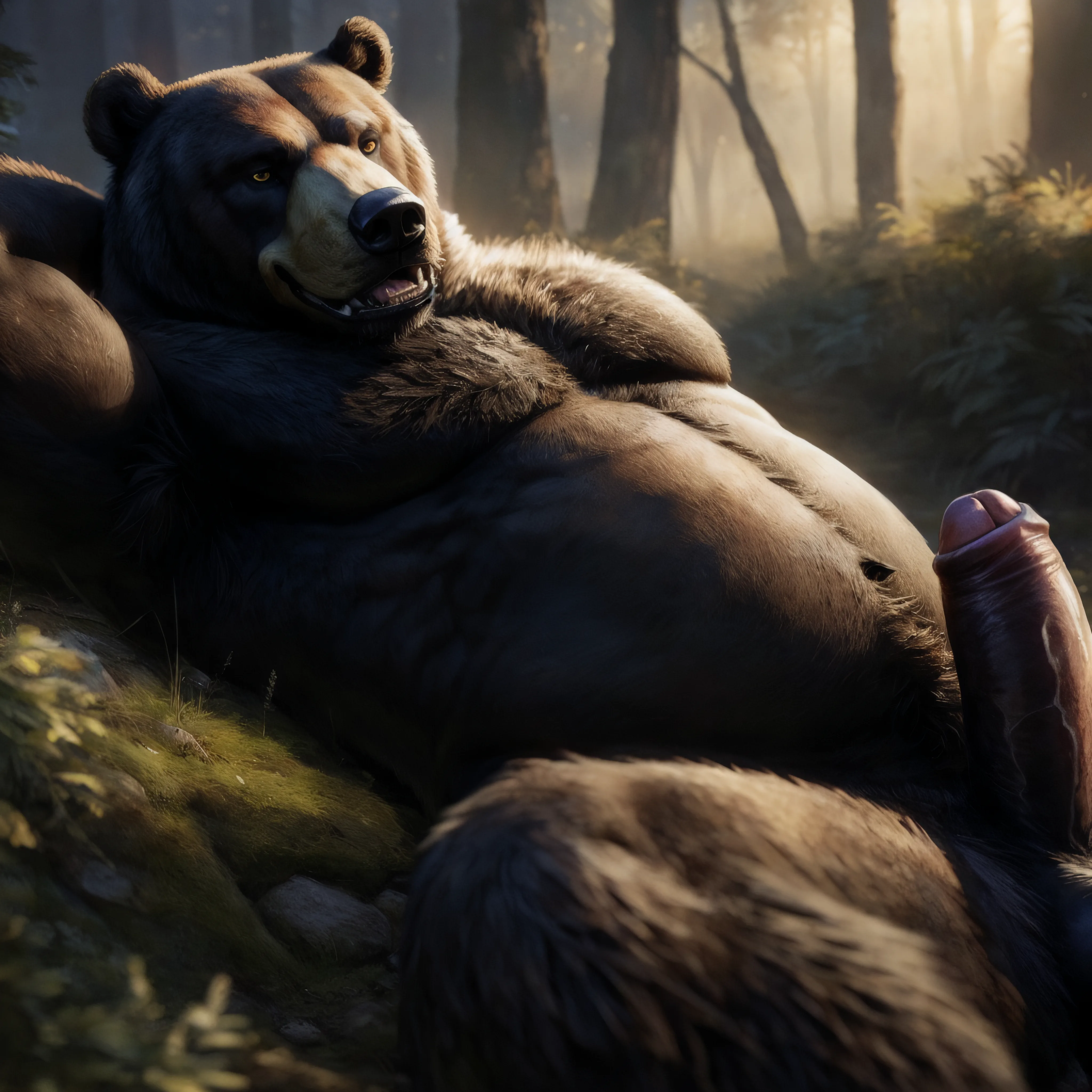 Muscular Bear Anthro Lies Nude On Forest Floor Presenting Thick Veiny | Yiff Party