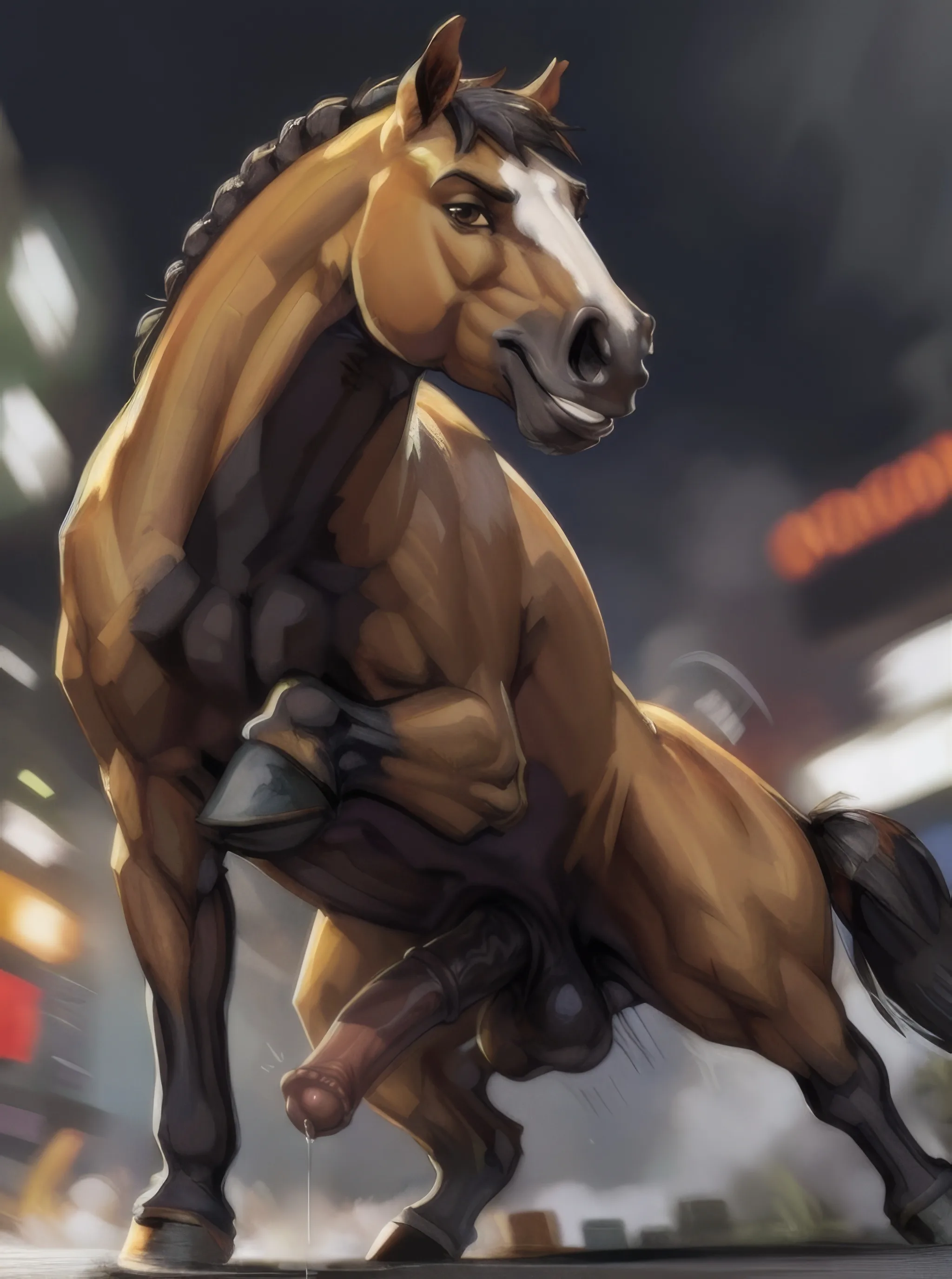 Muscular Black Furred Equine Stallion Smiling With Thick Dripping Prec | Yiff Party