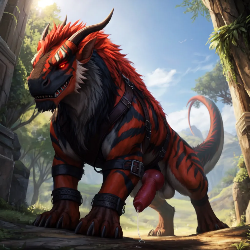 Muscular Black Grey Felkin Stands Tall By Ancient Tree Solo With Giant | Yiff Party