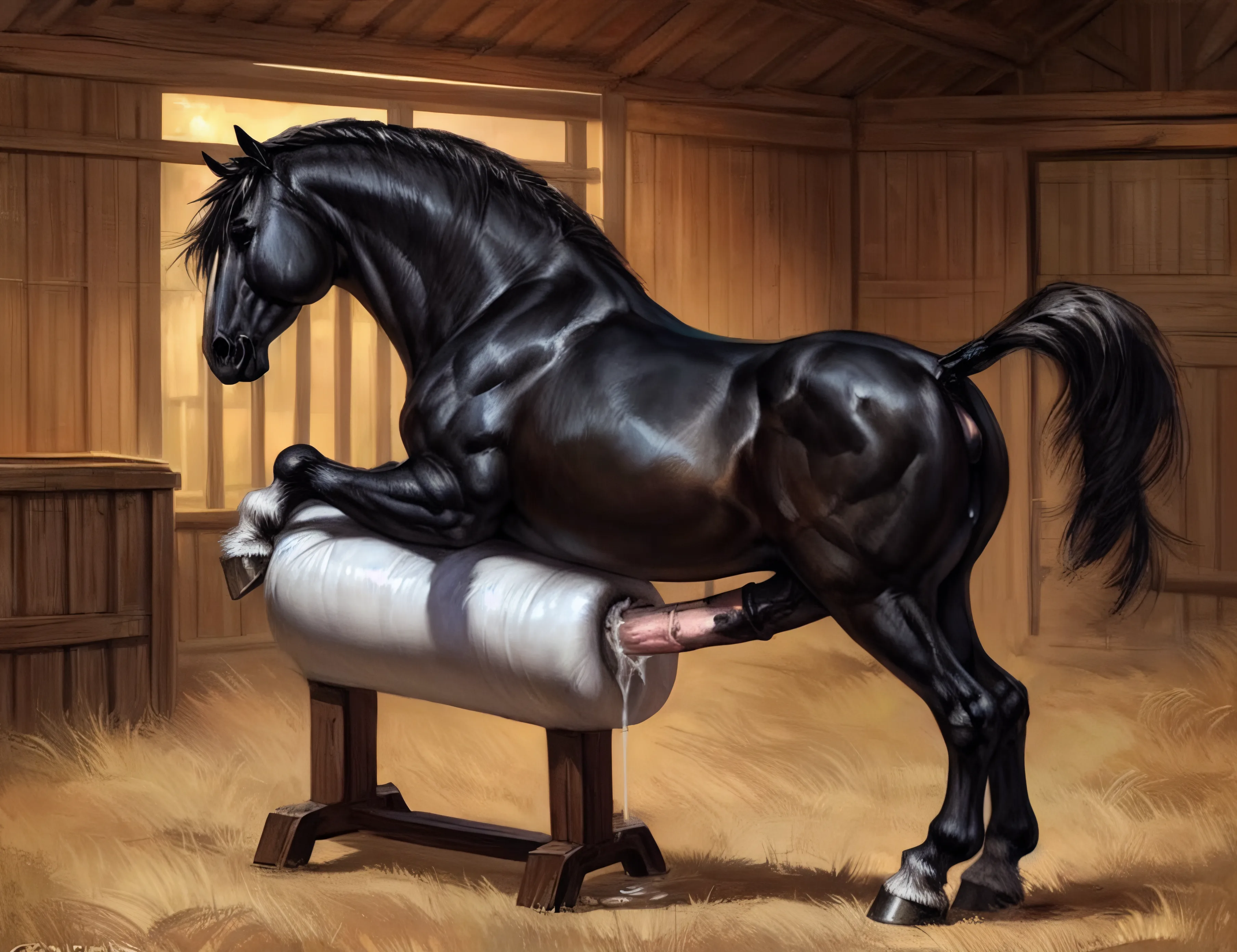 Muscular Black Stud Horse Breeding In Barn | Yiff Party