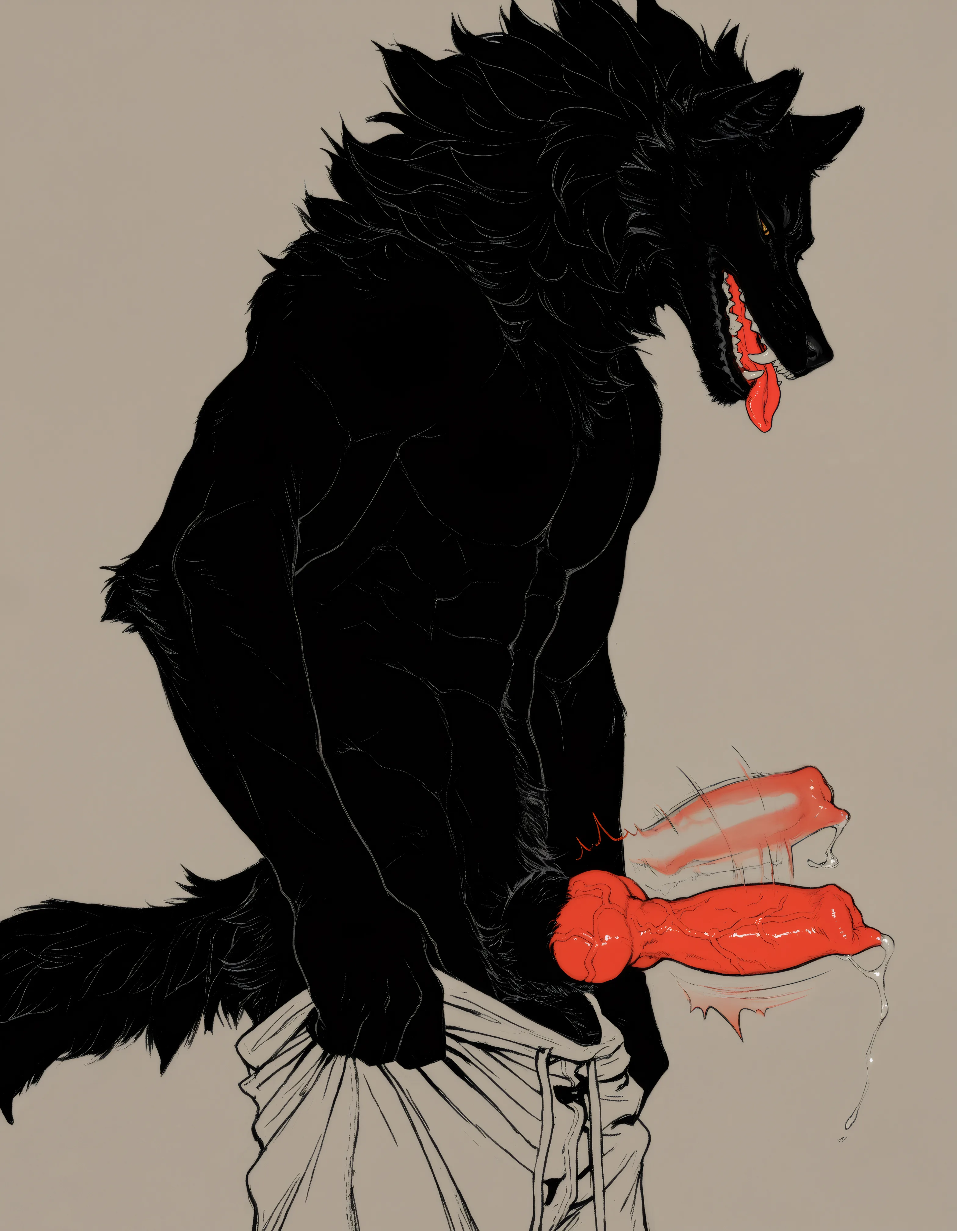 Muscular Black Wolf Anthro With Erect Veiny Canine Penis And Big Knot | Yiff Party