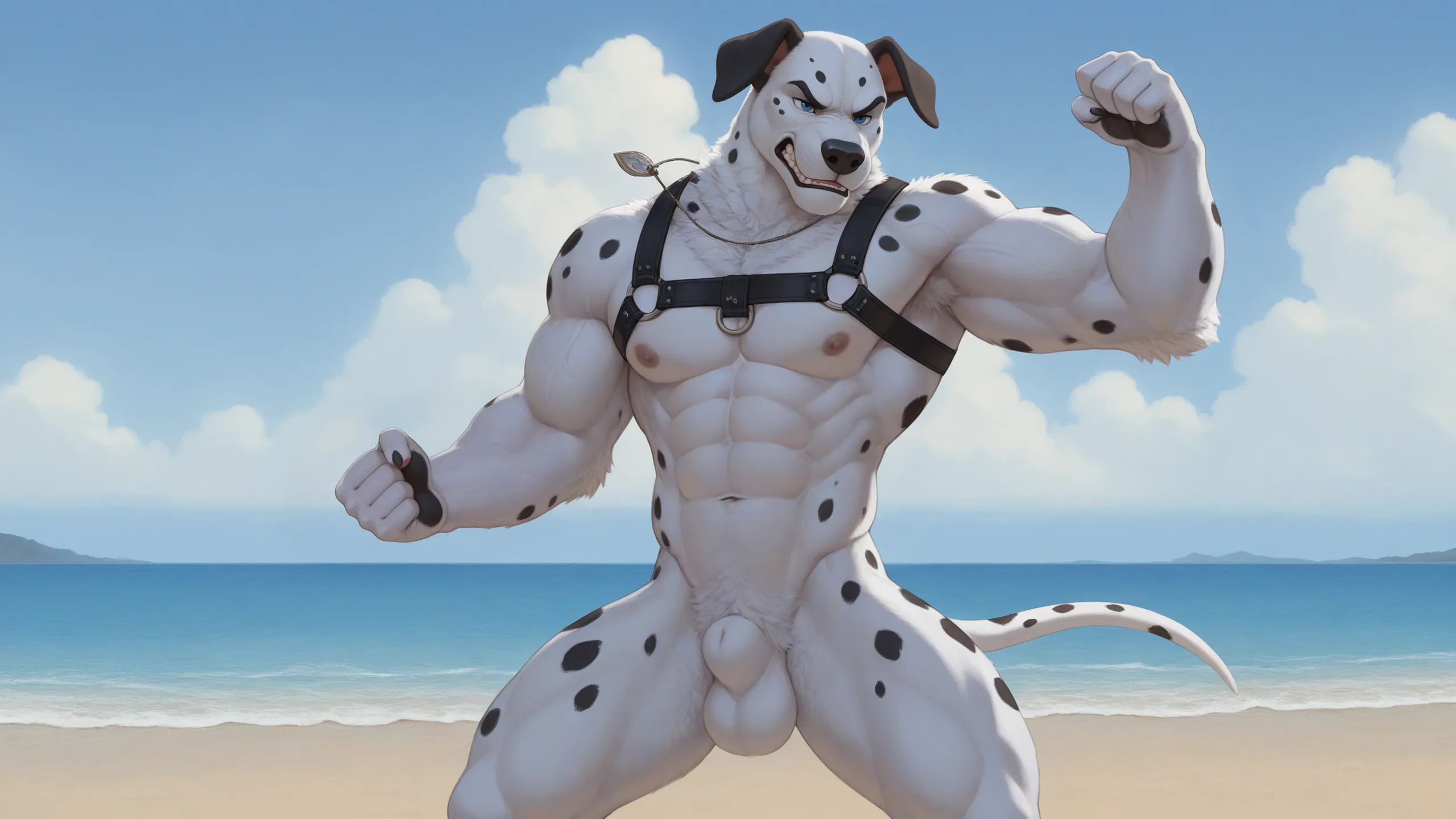 Muscular Dalmatian Anthro Flexing On Nude Beach | Yiff Party