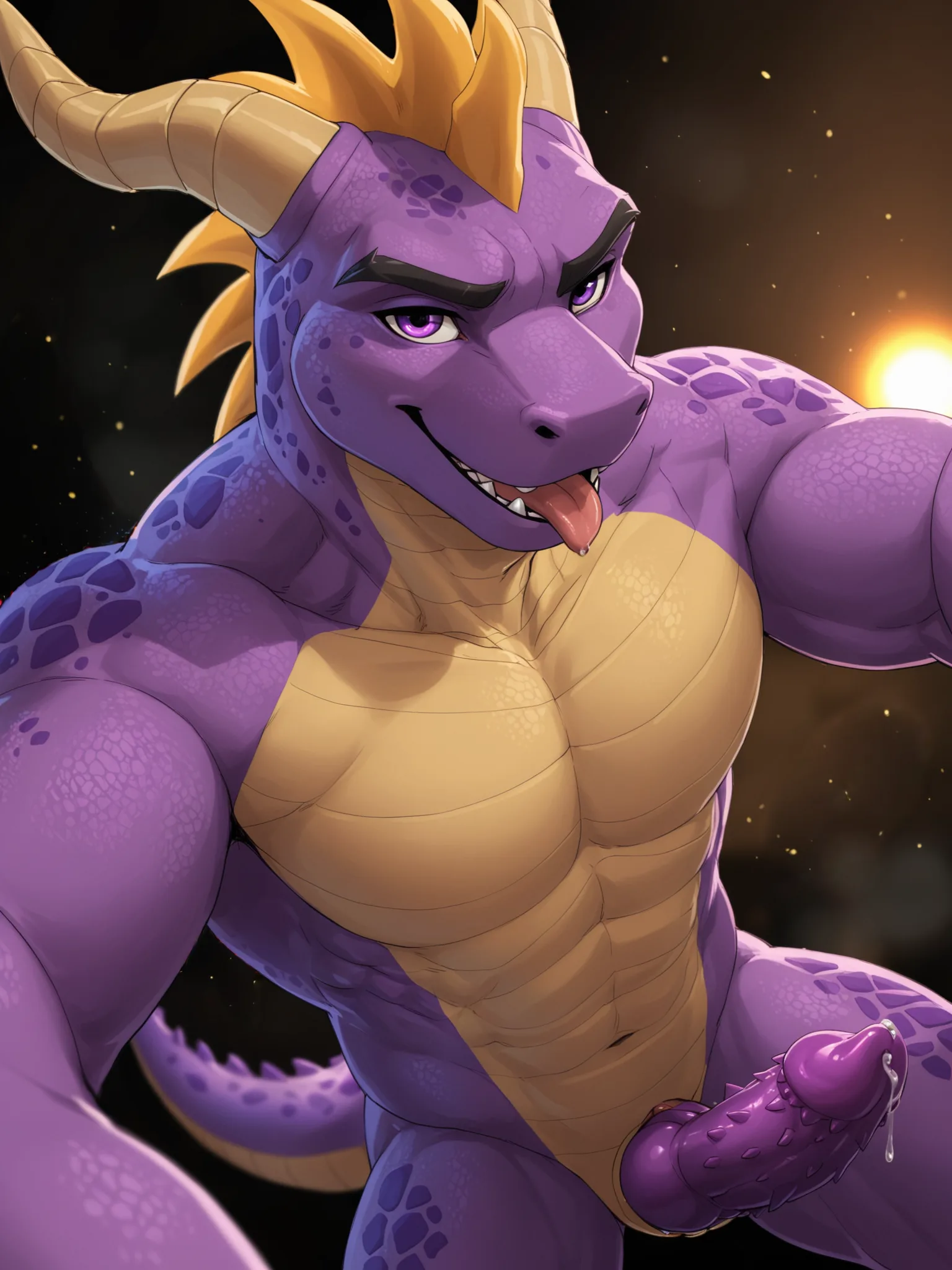Muscular Dragon Spyro Exposes Purple Penis With Cum | Yiff Party