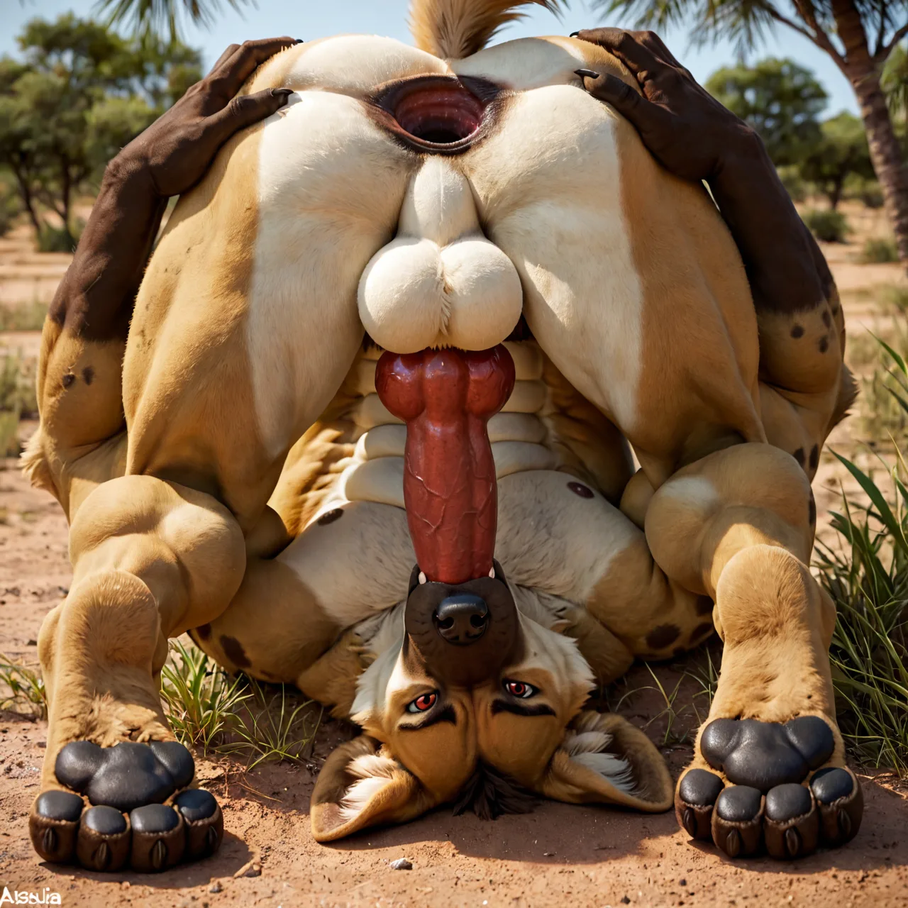 Muscular Hyaenid Anthro Gives Himself Autofellatio Outdoors | Yiff Party