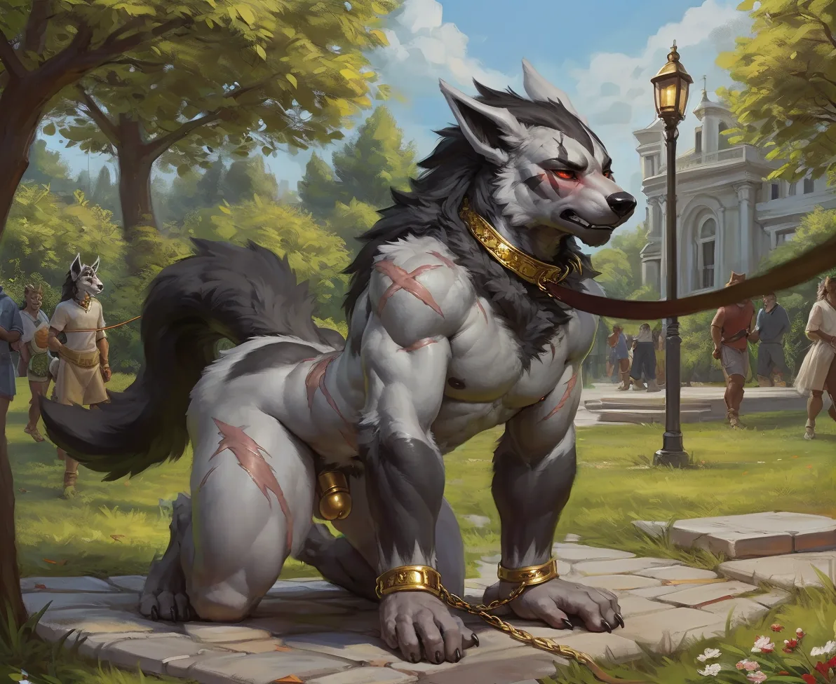 Muscular Mightyena Restrained In Gold Chastity Cage And Collar On All | Yiff Party