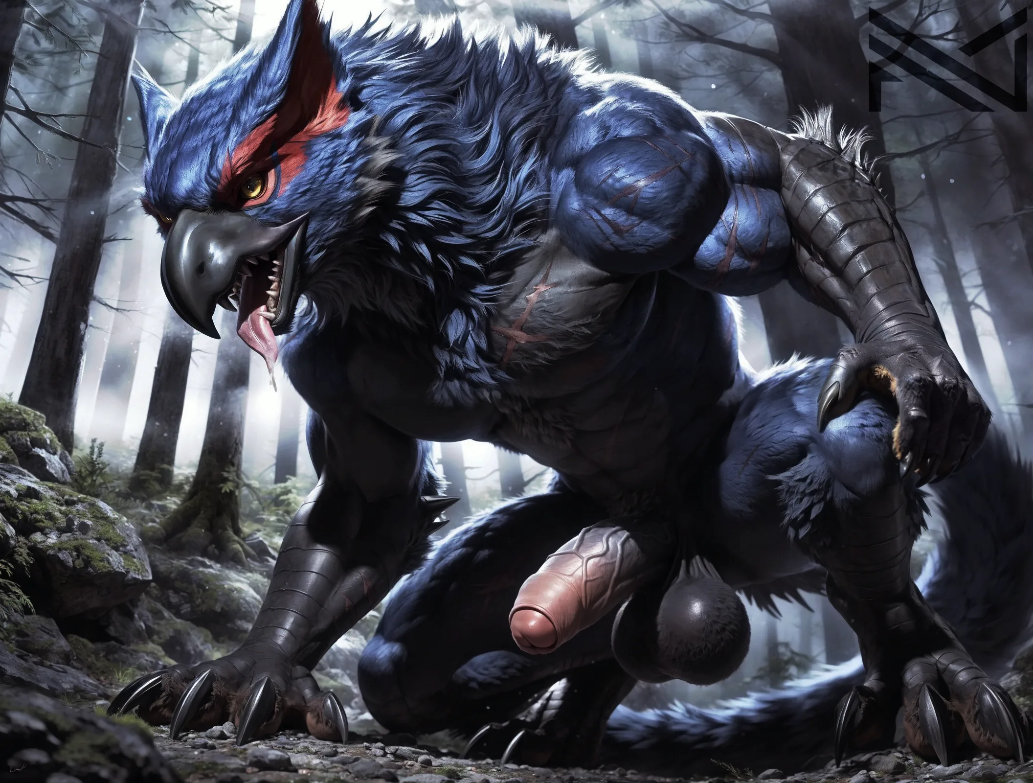 Muscular Nargacuga Monster With Big Veiny Penis Crouching In Forest | Yiff Party