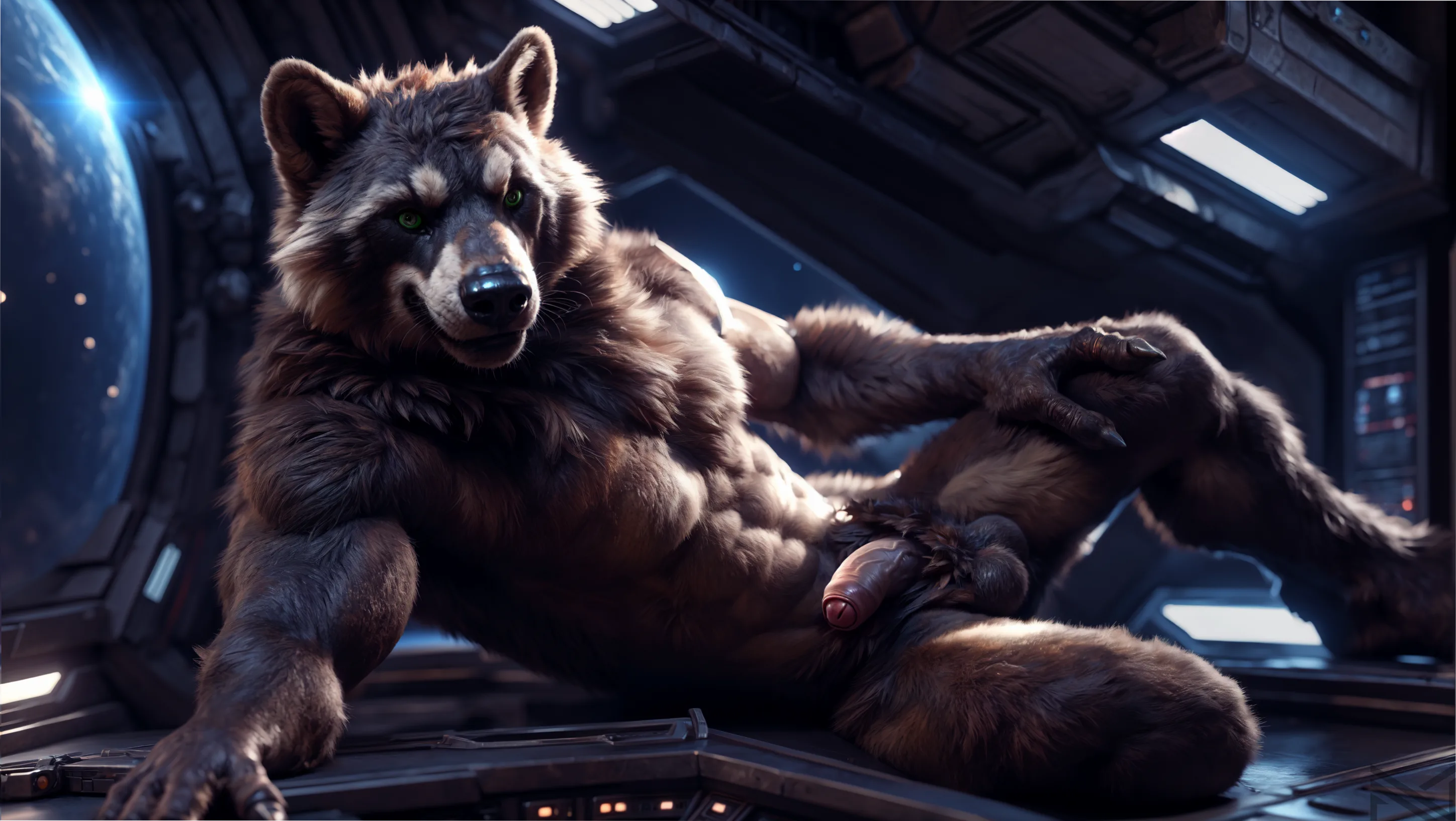 Muscular Rocket Raccoon Lying Nude In Spaceship | Yiff Party