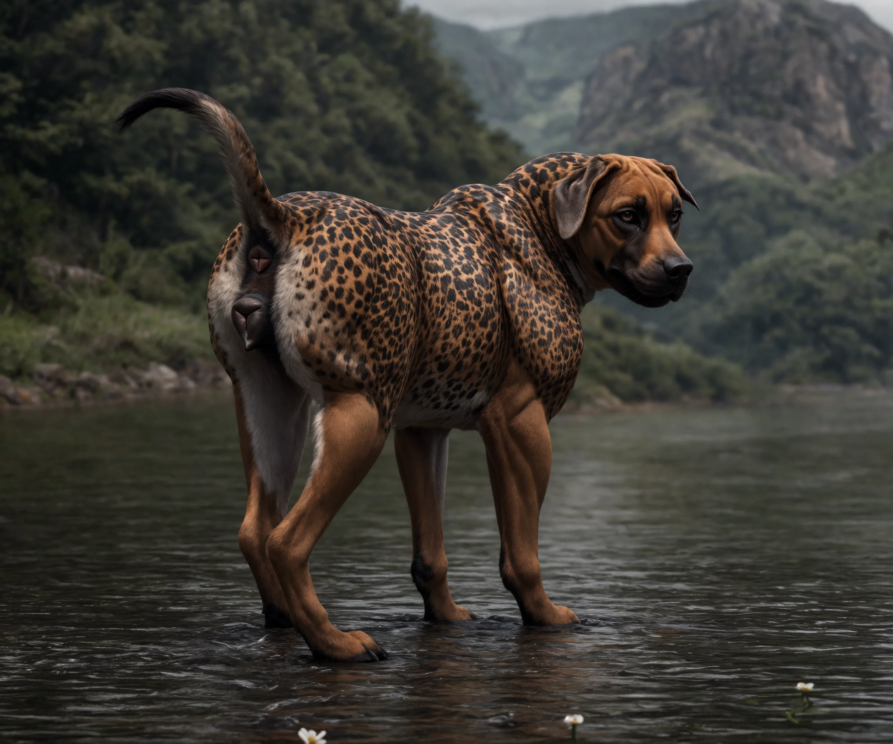Muscular Spotted Boerboel Bitch Presents Pink Anus By Water | Yiff Party