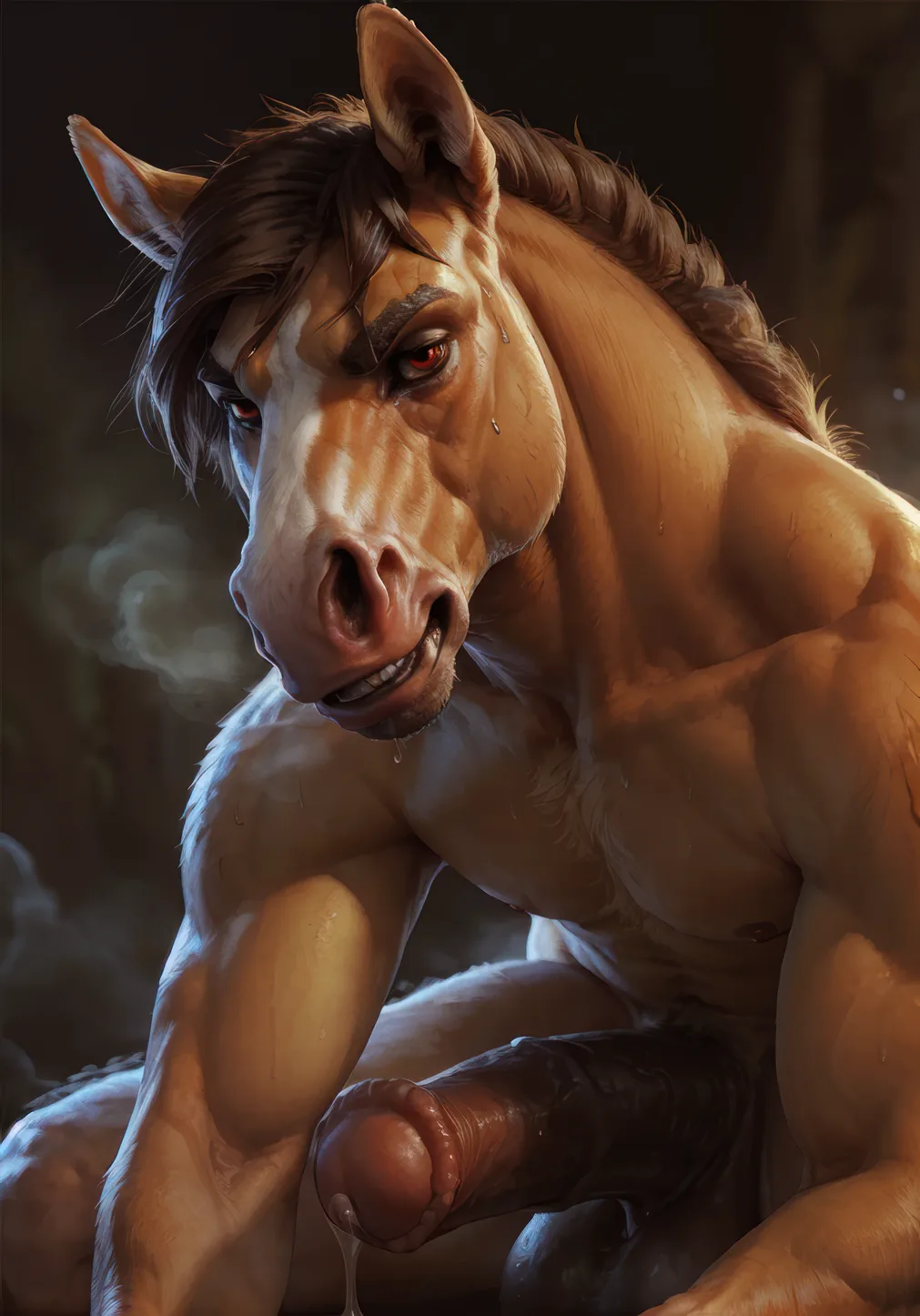 Muscular Stallion Smirking With Erect Equine Penis | Yiff Party