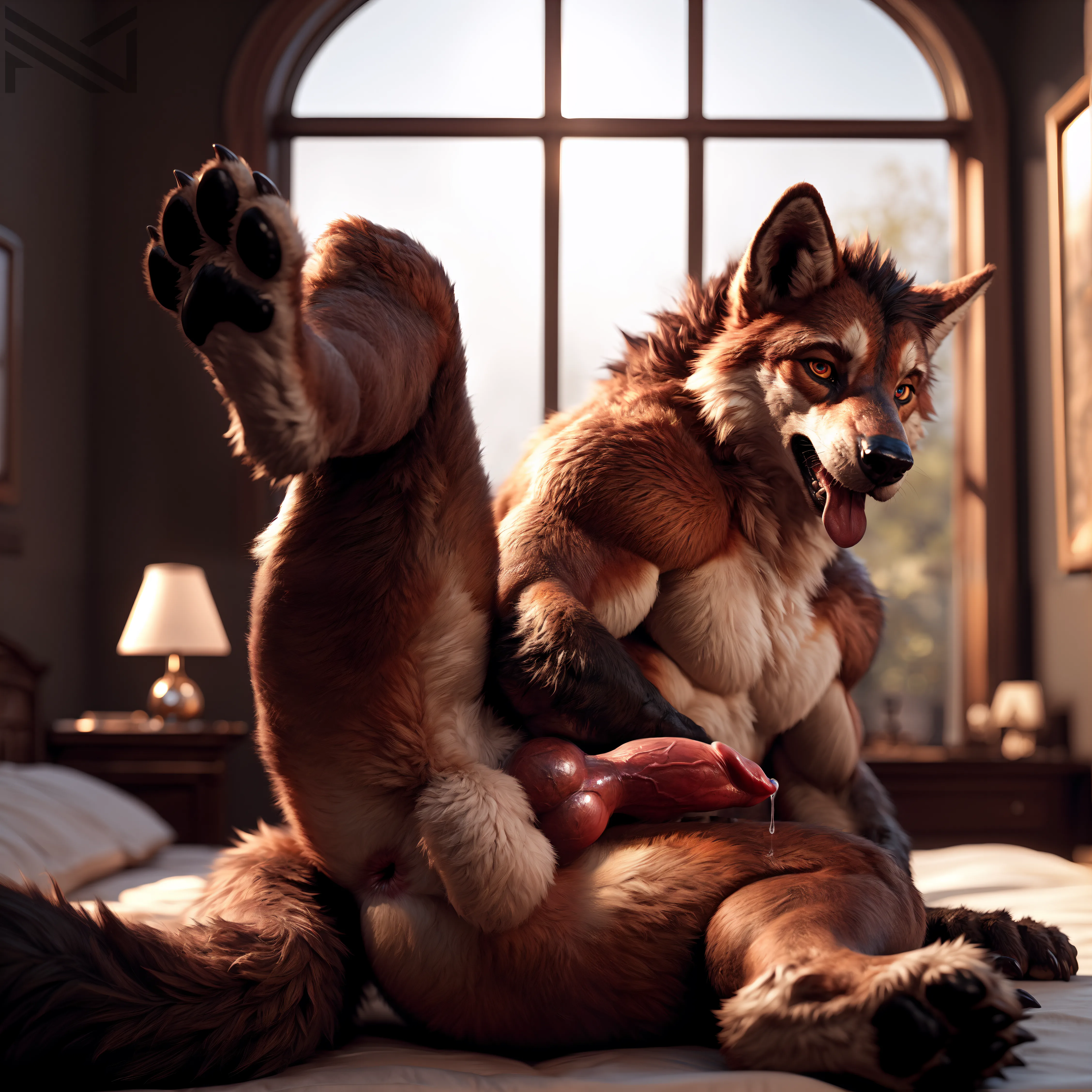 Muscular Wolf Hybrid Presents Huge Erect Knotted Penis And Dripping Ba | Yiff Party
