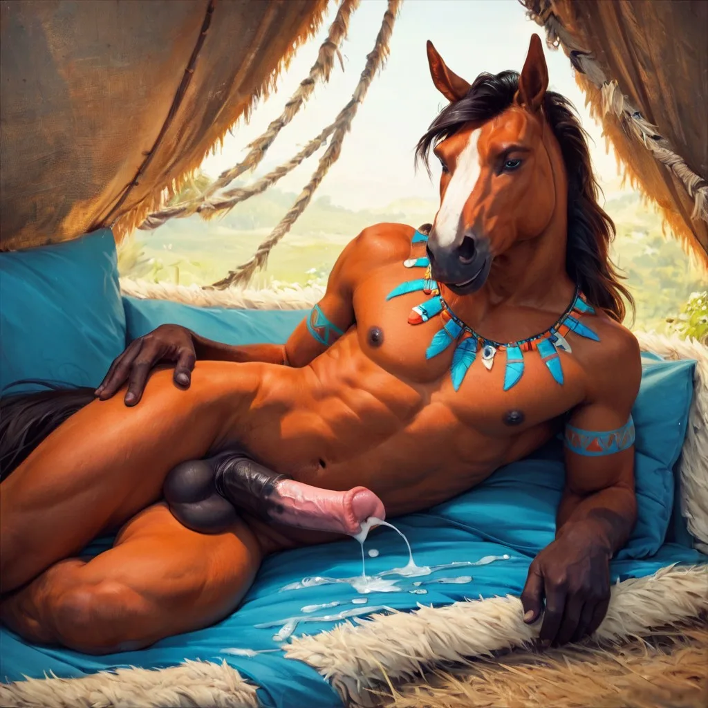 MuscularEquineStallionLyingNudeWithVeinyBlueBlackBalls | Yiff Party
