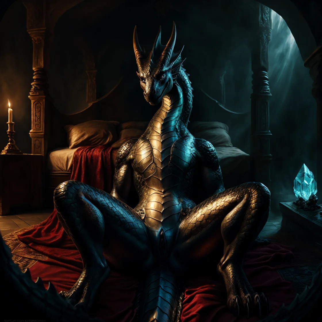 Mythical Wingless Dragon Queen Spreads On Royal Bed | Yiff Party