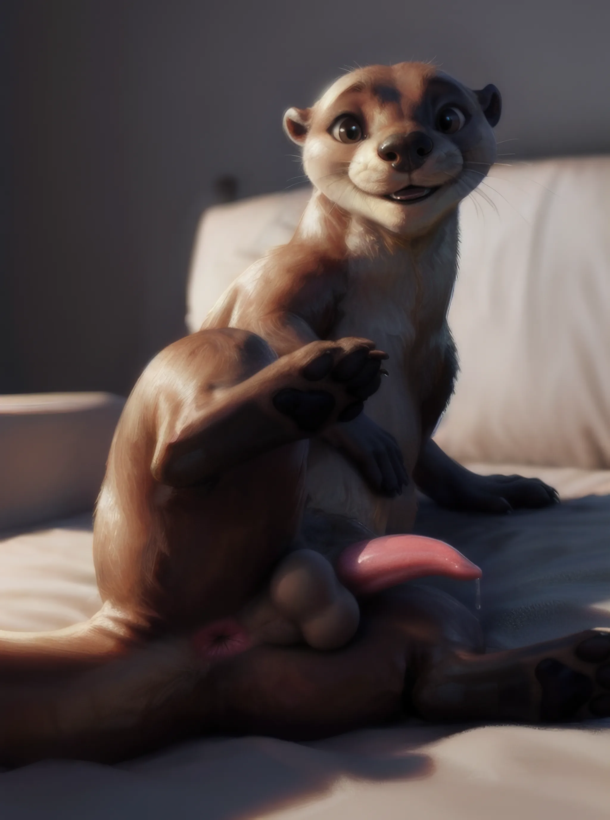 Naughty Otter Boy Presents His Leaking Tool On Bed | Yiff Party