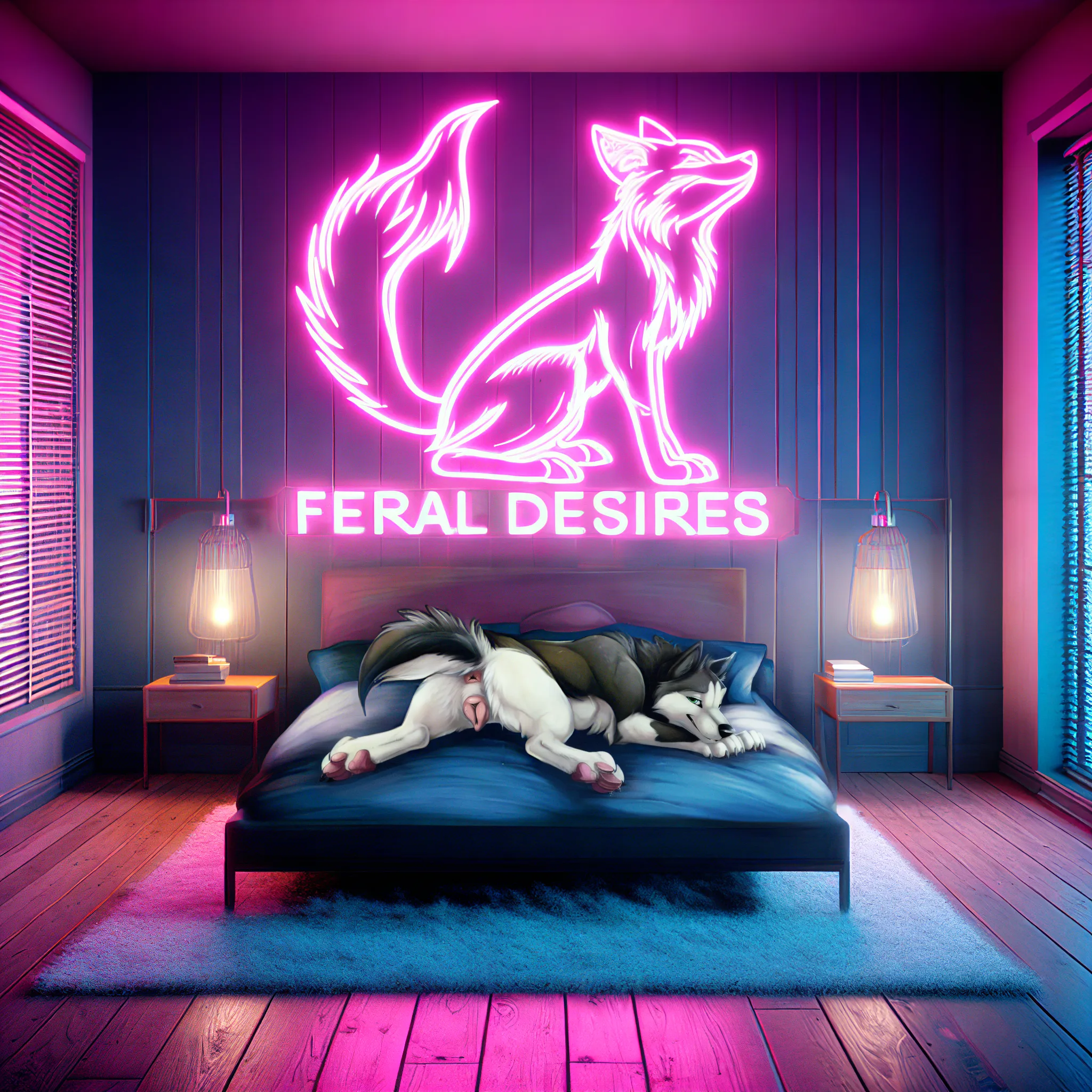 Naughty Wolf Babe Spreads Legs On Neon Lit Bed | Yiff Party