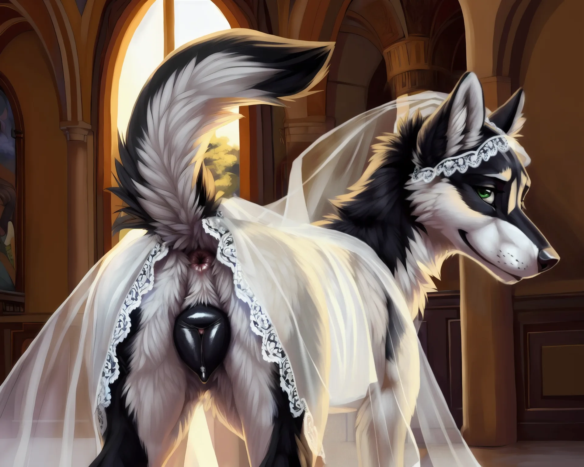 Naughty Wolf Bride Exposes Swollen Pink Vulva In Church | Yiff Party