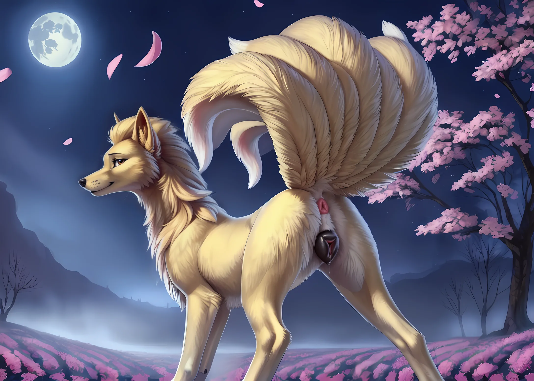 Ninetales Shows Off Her Wet Canine Pussy Under The Full Moon | Yiff Party