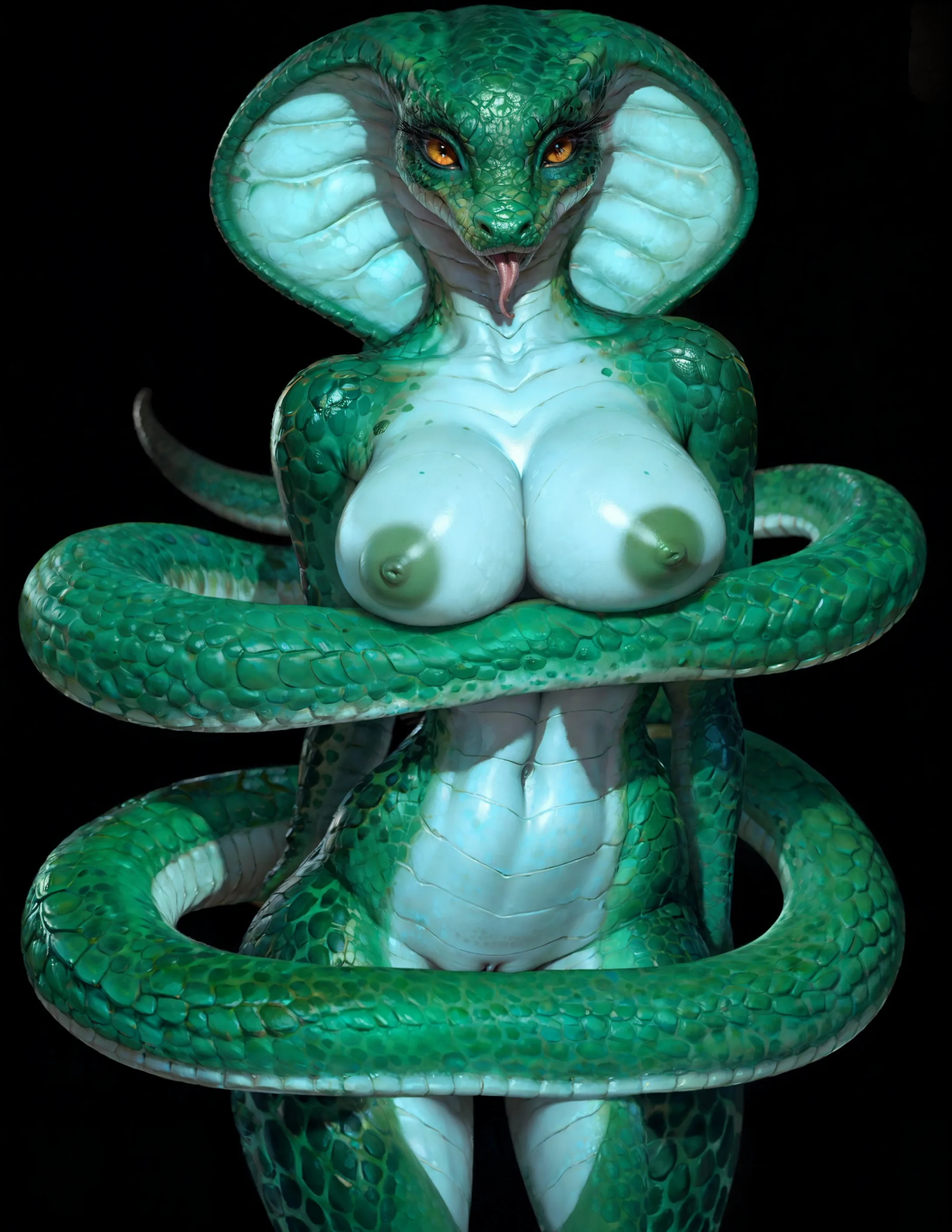 Nude Cobra Scalie With Large Breasts And Forked Tongue Exposed Against | Yiff Party