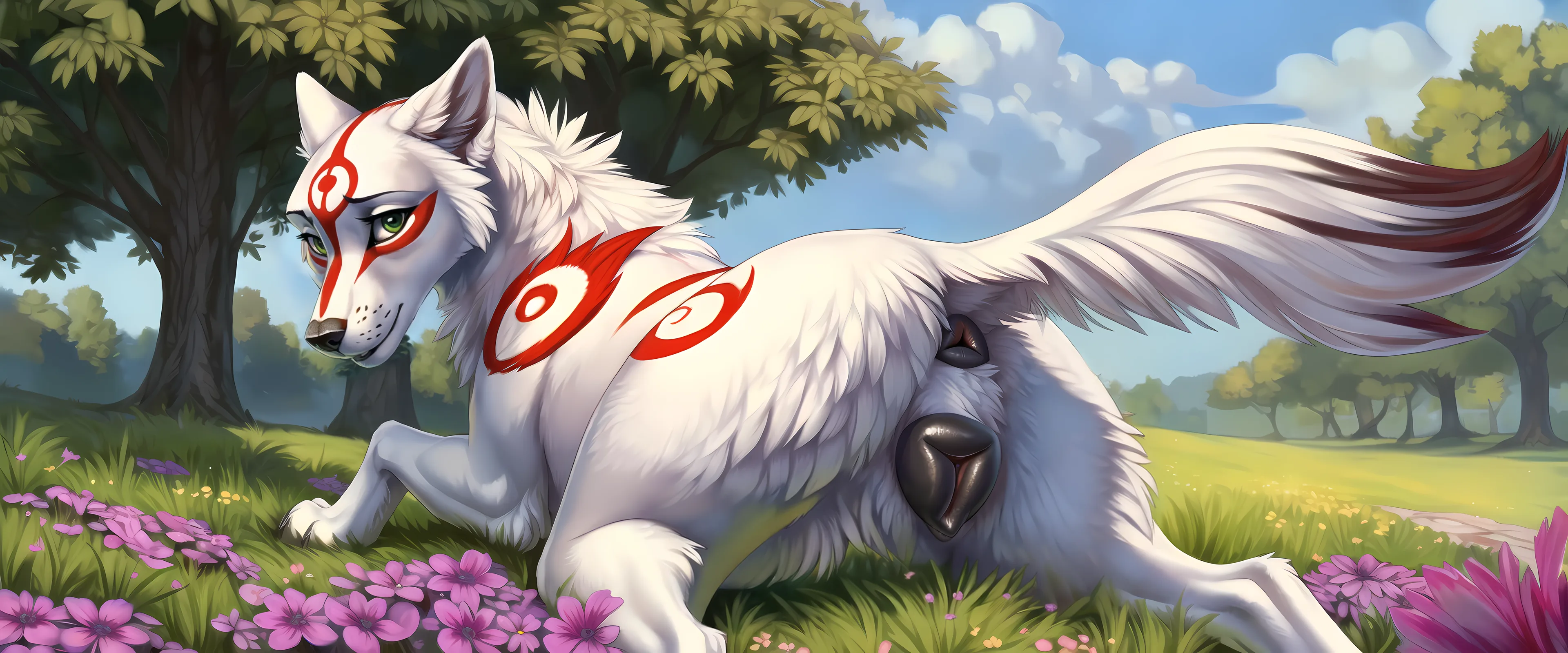 Nude White Wolf Amaterasu Presents Wet Black Pussy In Nature Scene | Yiff Party