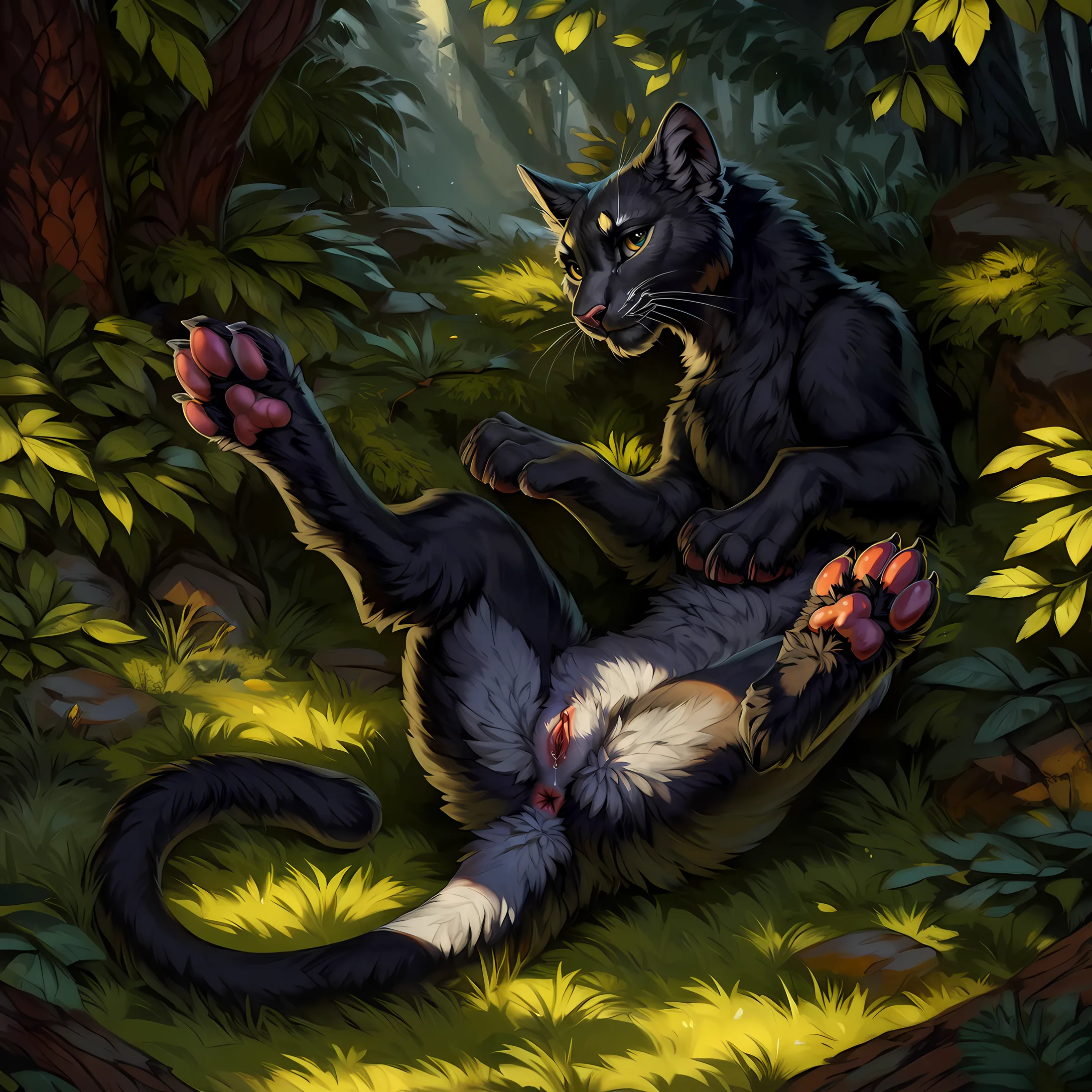 Pantherine Beauty Exposing Soaked Feline Pussy On Grassy Knoll | Yiff Party