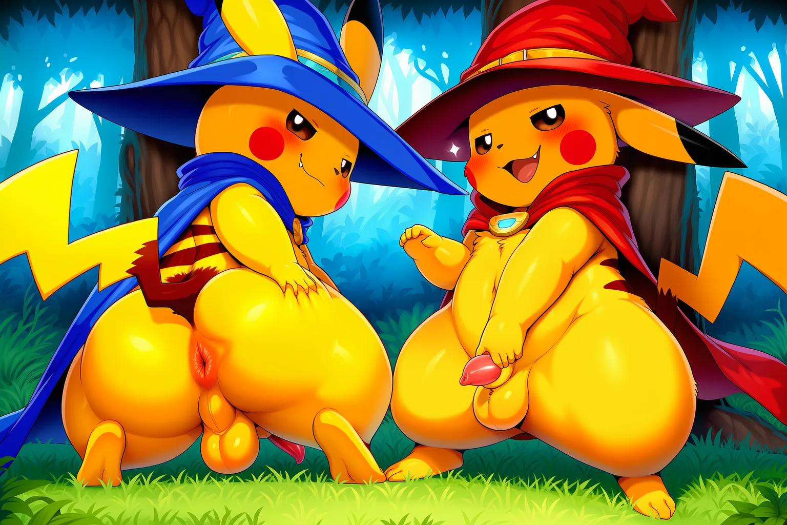 Pikachu And Raichu Presenting In Forest With Erection Glistening Body | Yiff Party
