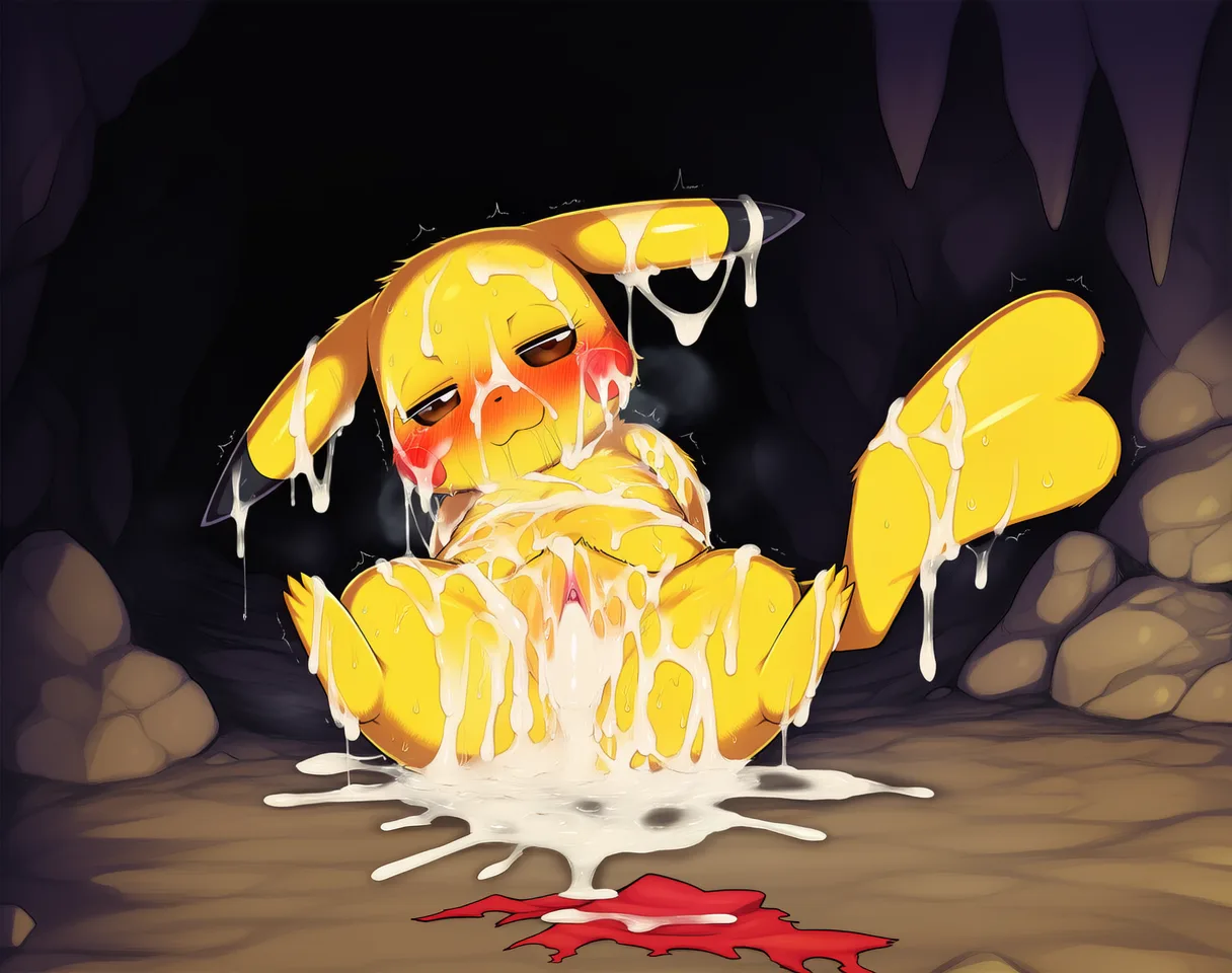Pikachu Covered In Cum And Exhausted Lying On Ground In Torn Clothing | Yiff Party