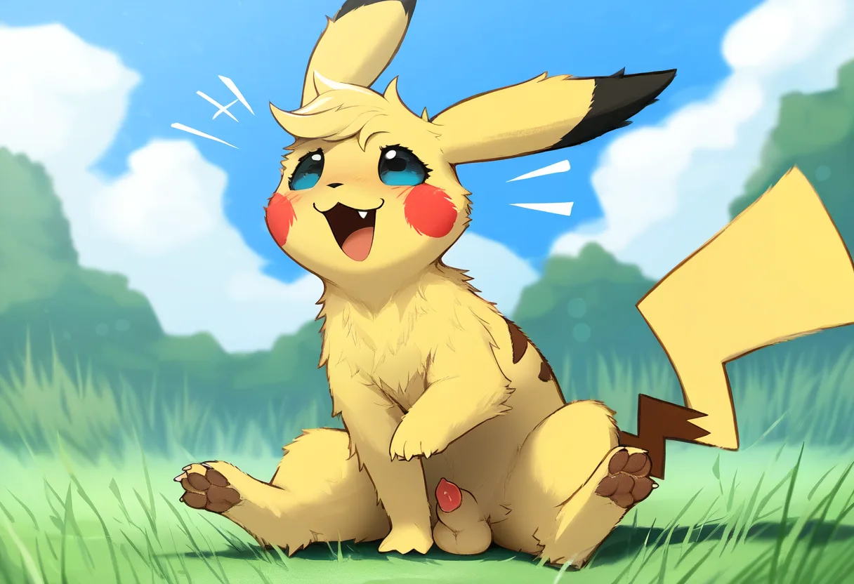 Pikachu Naked Sitting Showing Genitals Tongue Out On Grass Near Tree | Yiff Party