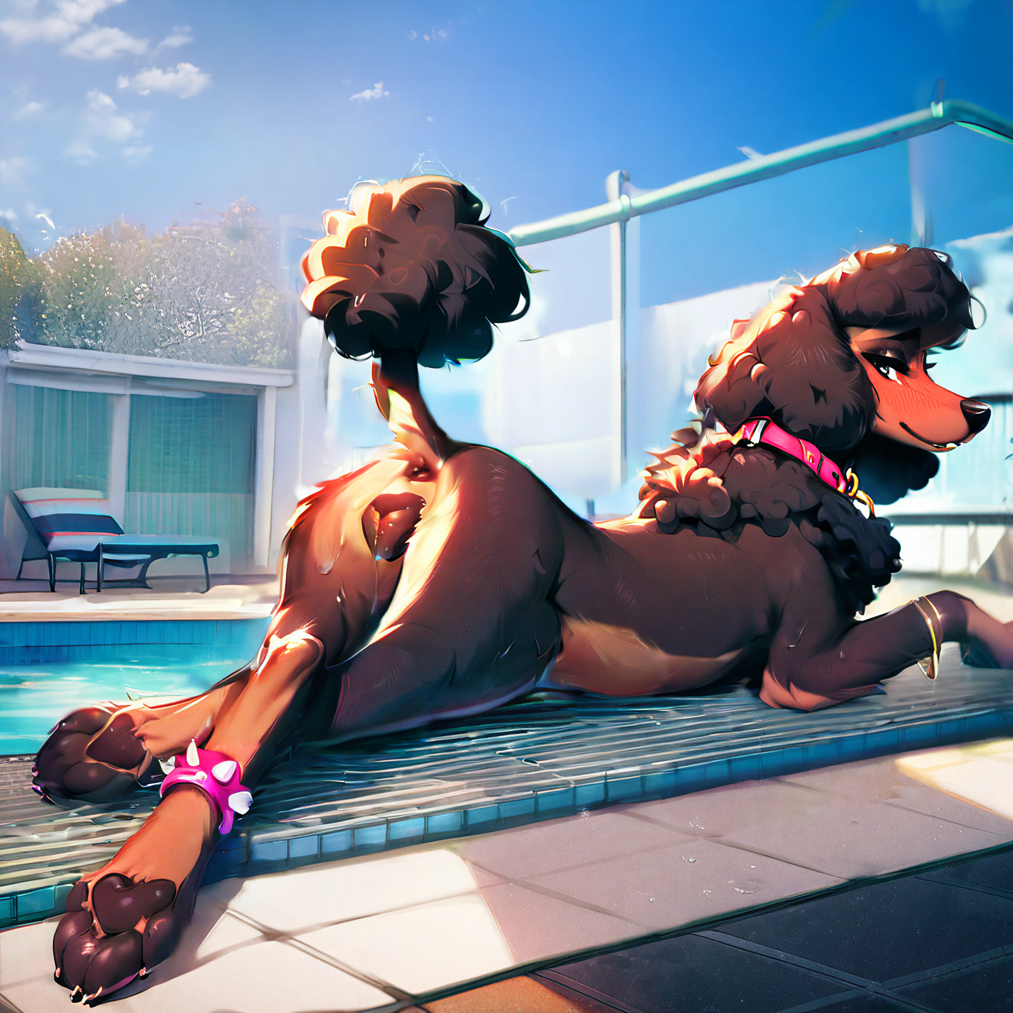 Poodle Babe Flaunting Wet Canine Pussy By Pool | Yiff Party