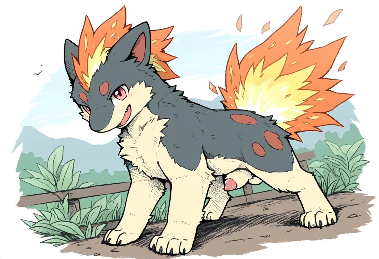 Quilava Rubs Erect Blue Penis On All Fours With Red Spots Outdoors | Yiff Party
