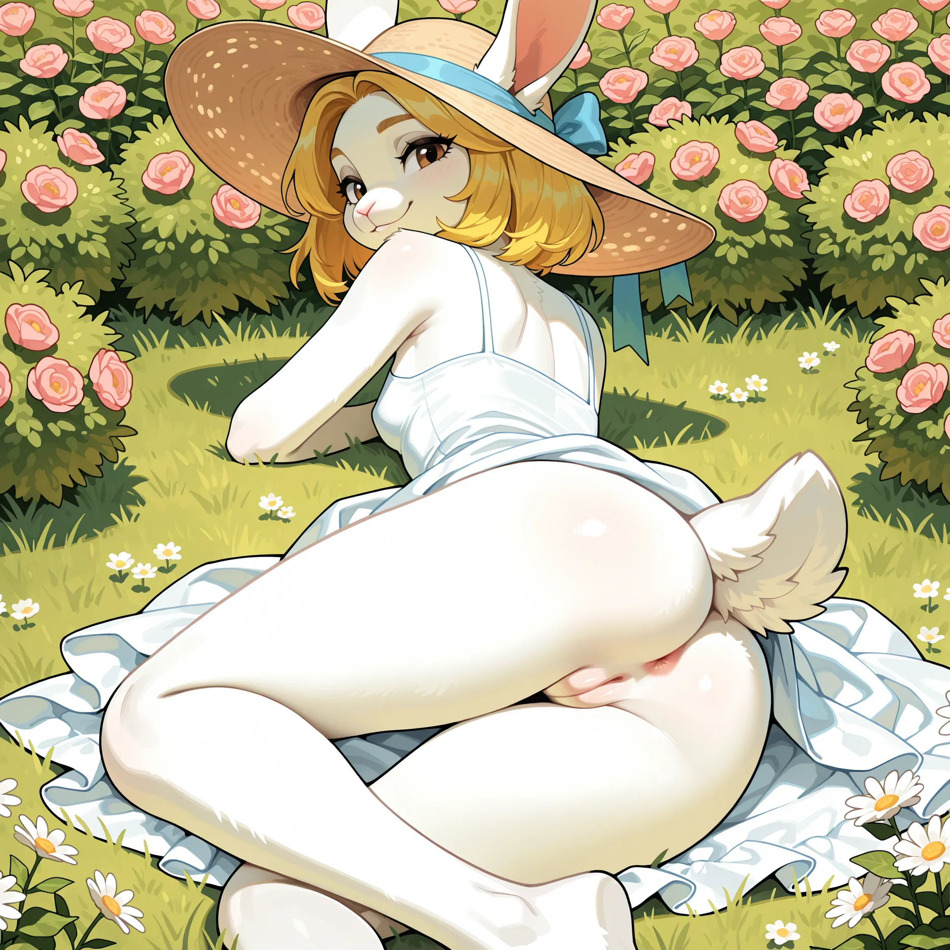 Rabbit Anthro Bottomless Presenting Pussy And Ass In Garden | Yiff Party