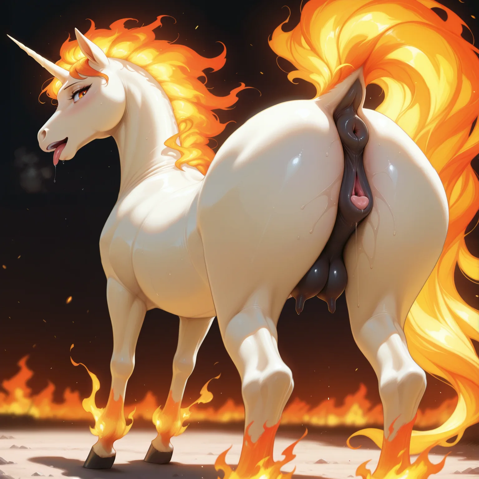 Rapidash Solo Rear View, Blushing With Clitoral Winking And Raised Tai | Yiff Party