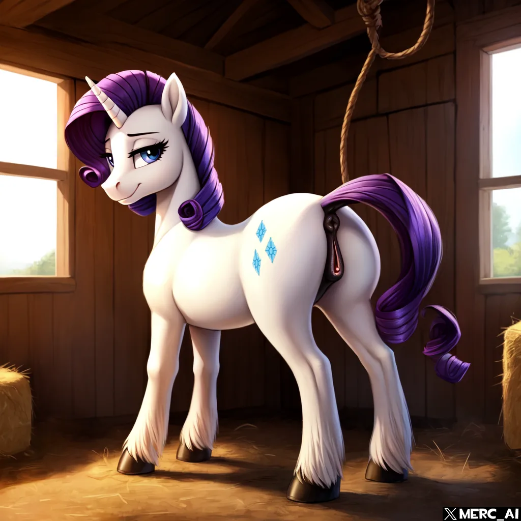 Rarity Presents Her Pristine Equine Pussy And Pert Butt In Barn | Yiff Party