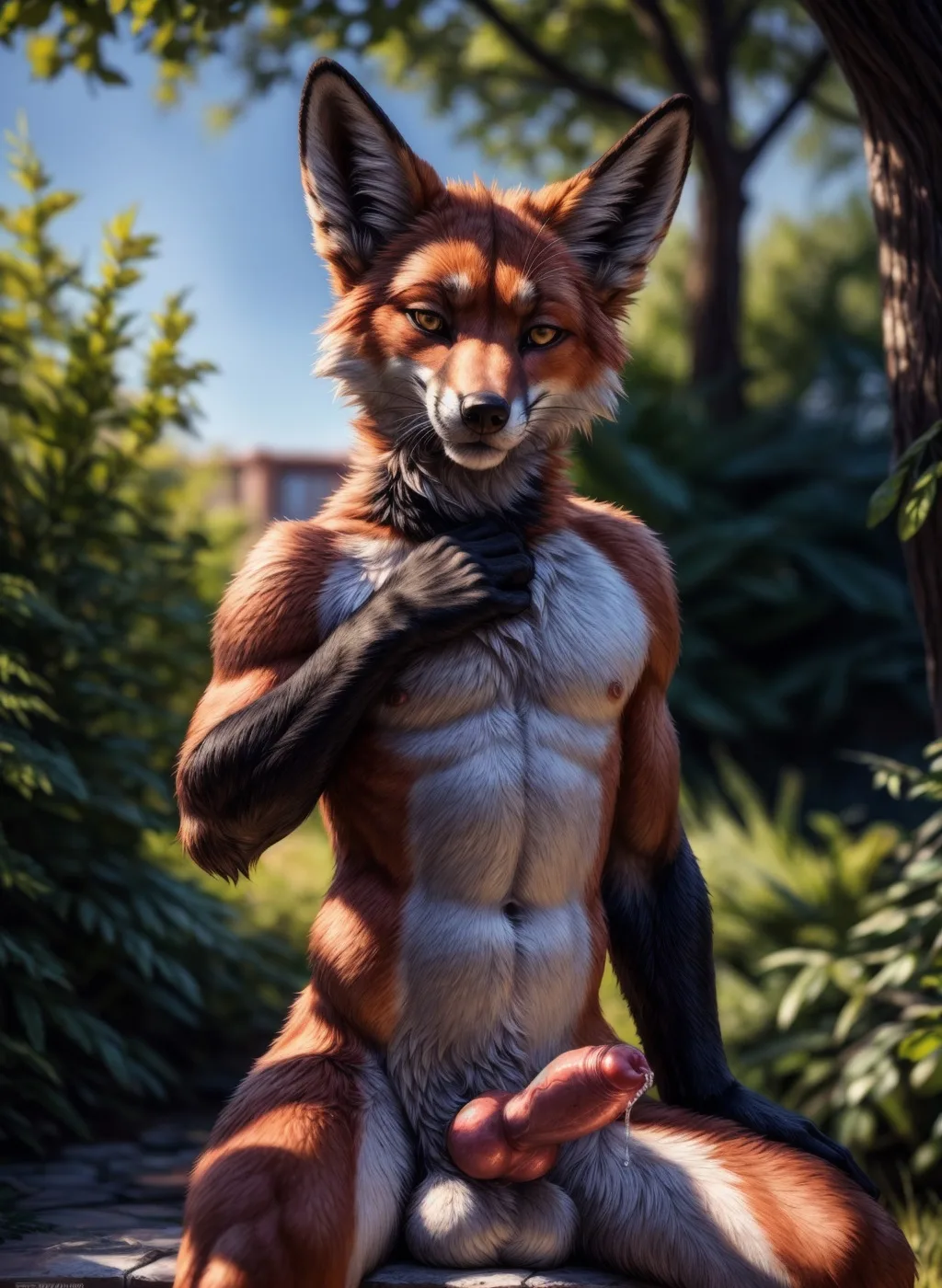 Red Fox Anthro Nude Sitting On Ground Showing Erection And Balls With | Yiff Party