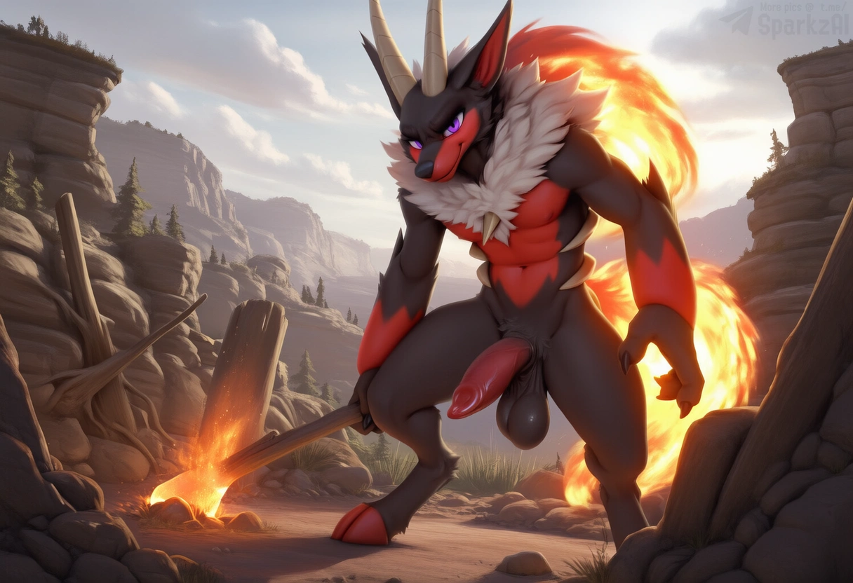Red Furred Palworld Ram Anthro With Big Black Balls And Erect Penis Ho | Yiff Party