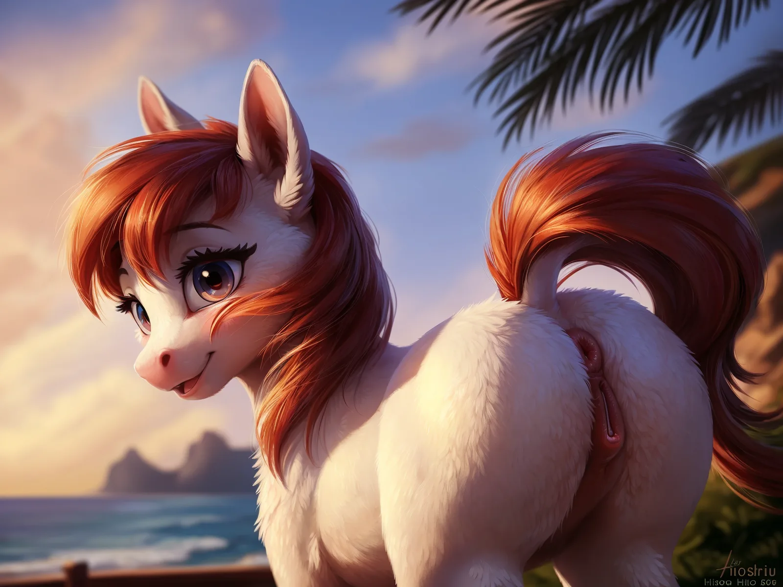 Redhaired Pony Presents Hindquarters To Viewer On Breezy Beach | Yiff Party