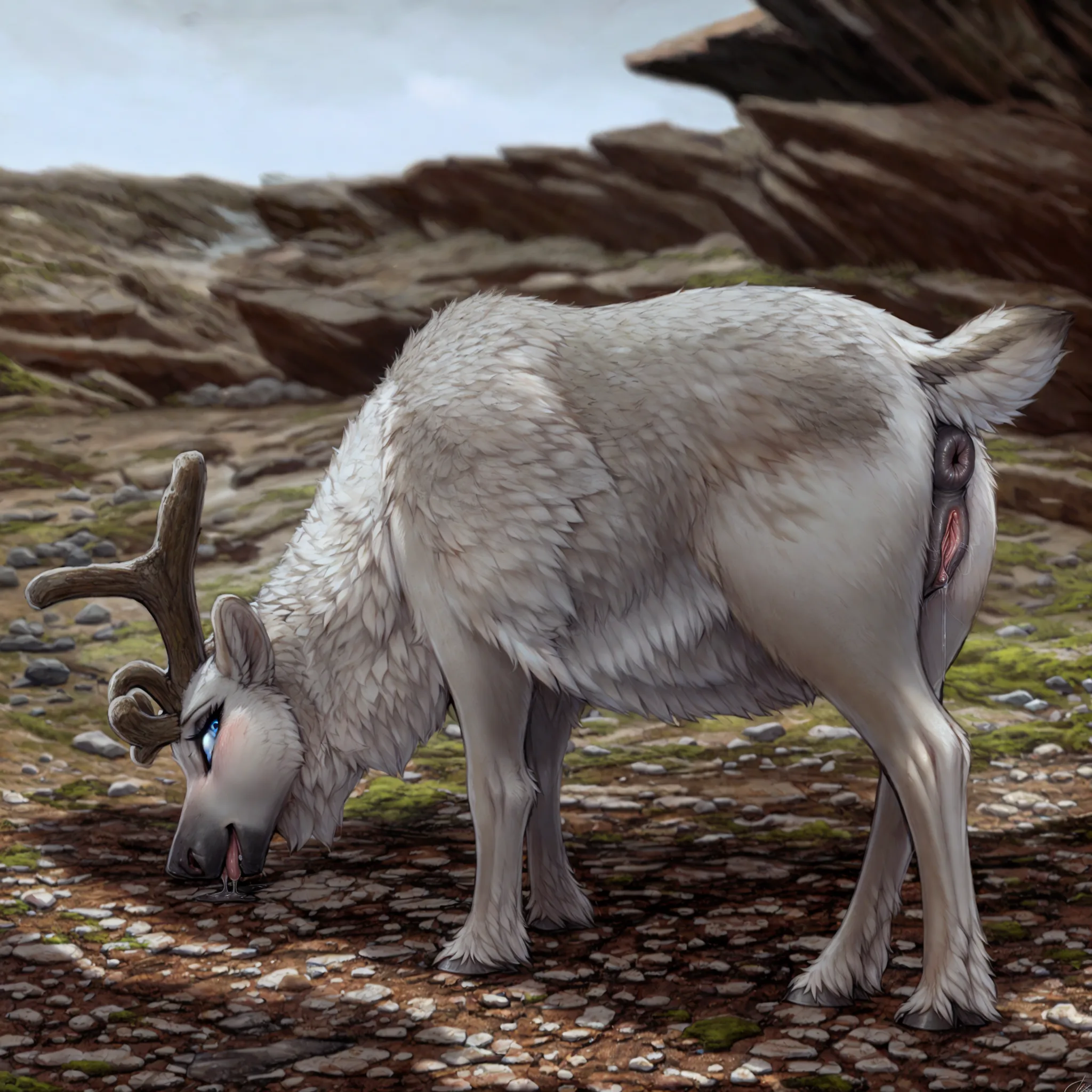Reindeer Doe Shows Dripping Pussy And Puffy Black Anus In Nature | Yiff Party