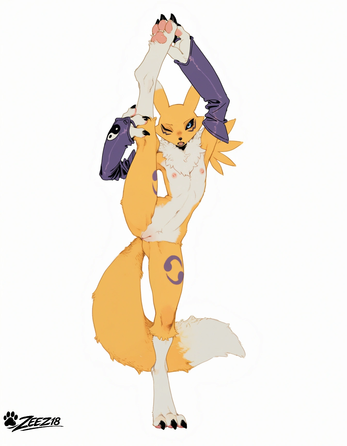 Renamon Anthro Digimon Spreading Legs Showing Pussy And Fluffy Tail | Yiff Party