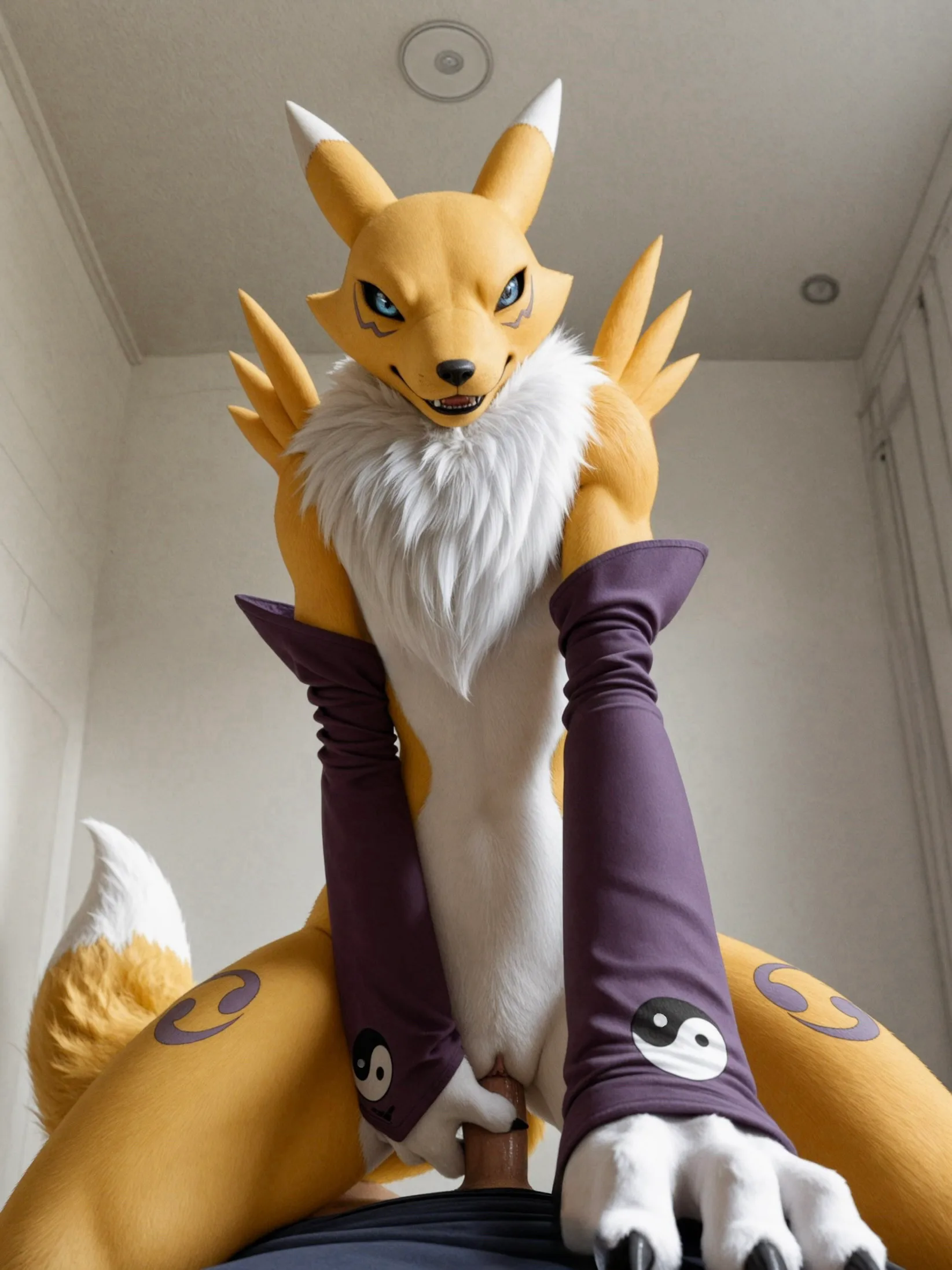 Renamon Riding Human Cowboy Style White Fur Blue Eyes Grin | Yiff Party