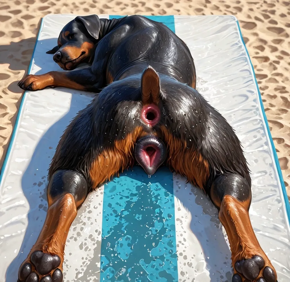 Rottweiler Female Presenting Gaping Pussy And Anus With Genital Fluids | Yiff Party