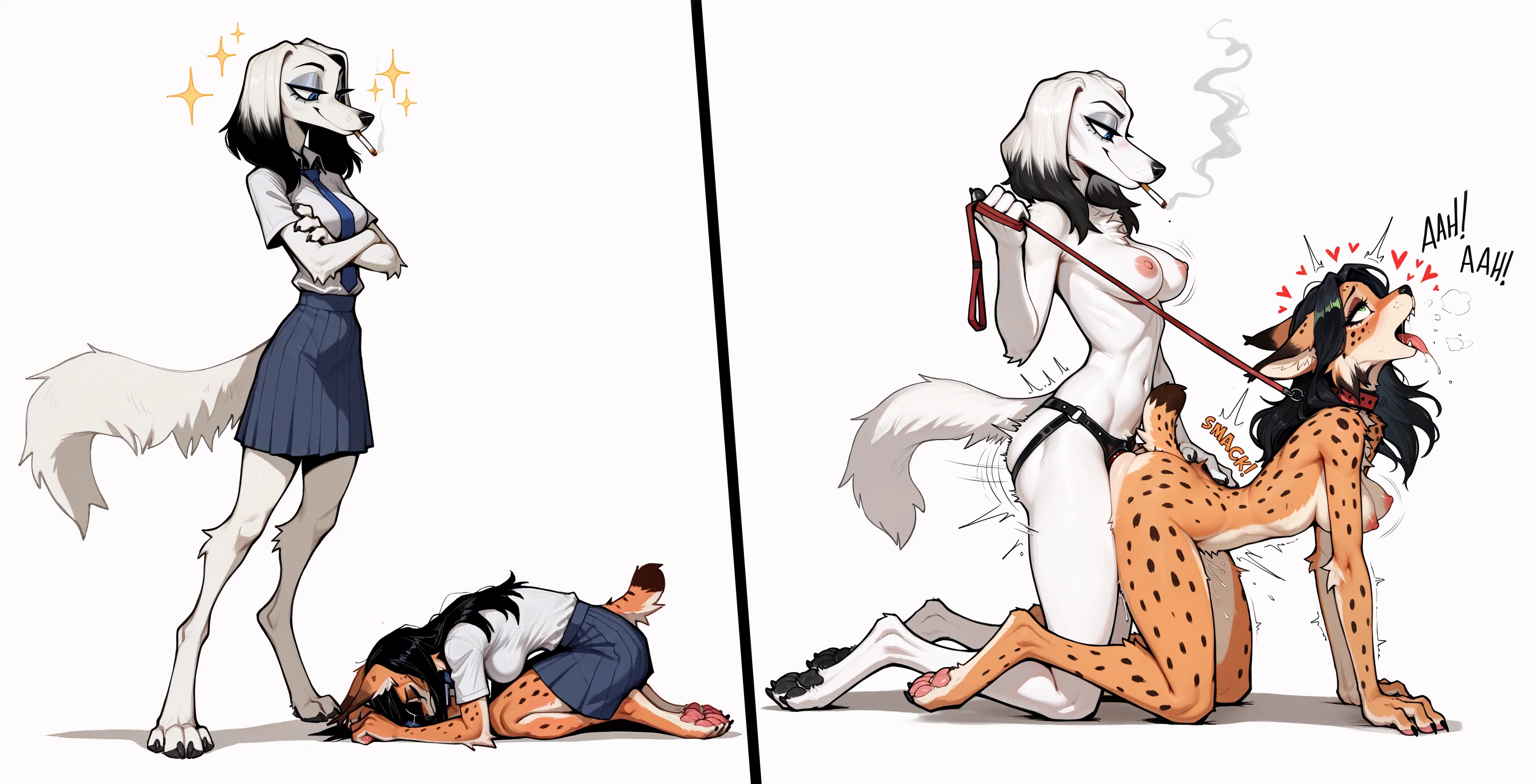 Saluki And Lynx Females In School Uniforms Engage In Strapon Sex | Yiff Party