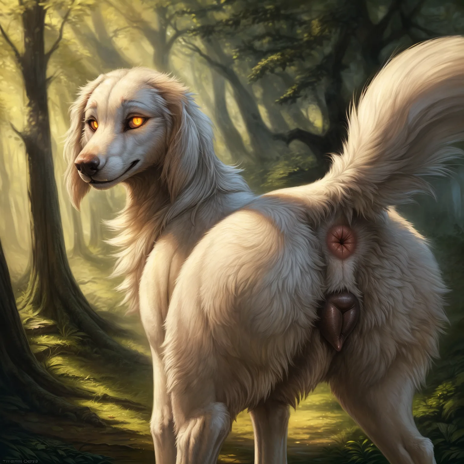 Saluki Sighthound Bitch Presents Glistening Pink Pussy And Anus In Sun | Yiff Party